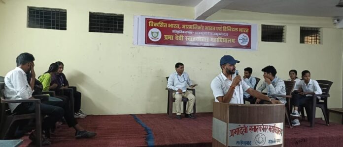 संत कबीर नगर (राष्ट्र की परम्परा)। स्थानीय प्रभा देवी स्नातकोत्तर महाविद्यालय, खलीलाबाद में चल रहे सांस्कृतिक सप्ताह के चौथे दिन गुरुवार को “आत्मनिर्भर भारत” विषय पर निबंध प्रतियोगिता, “संचार क्रांति और विकसित भारत” विषय पर भाषण प्रतियोगिता तथा “एक देश एक चुनाव” विषय पर वाद-विवाद प्रतियोगिता का आयोजन किया गया।