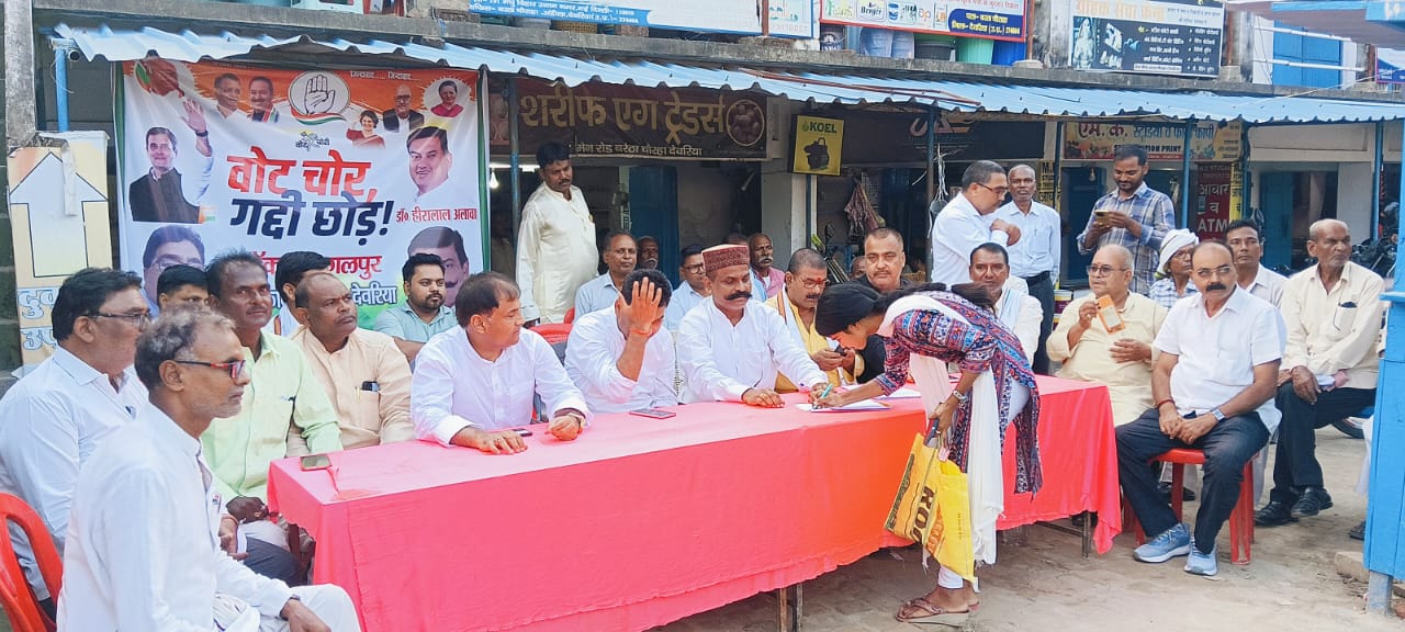 सलेमपुर क्षेत्र के बरठा चौराहे पर कांग्रेसियों ने चलाया “वोट चोर गद्दी छोड़ो” हस्ताक्षर अभियान