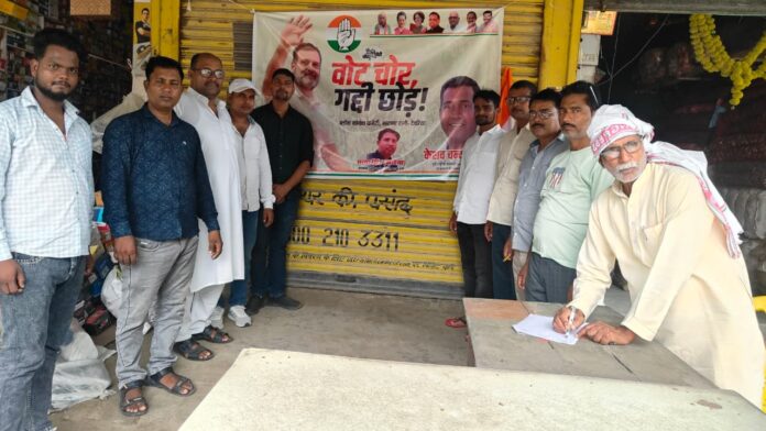 कांग्रेसियों ने चलाया वोट चोर गद्दी छोड़ अभियान के समर्थन में हस्ताक्षर अभियान