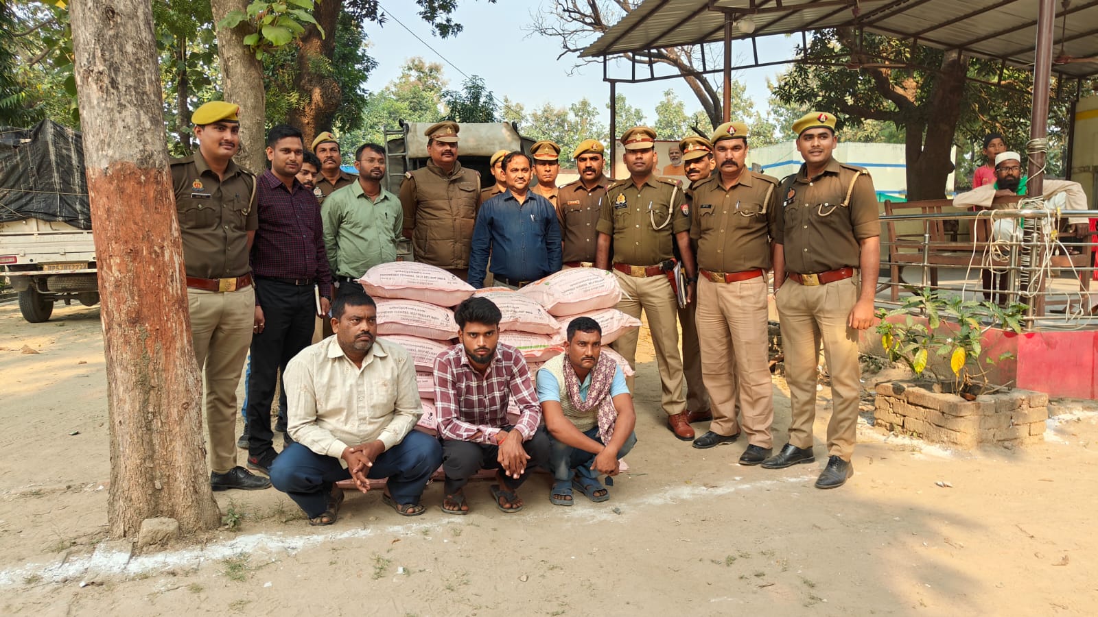 महराजगंज ( राष्ट्र की परम्परा)।पुलिस अधीक्षक महराजगंज डॉ कौस्तुभ के भारत नेपाल अन्तर्राष्ट्रीय सीमा पर चल रहे अवैध गतिबिधियो पर प्रभावी अंकुश लगाने के लिये चलाए जा रहे अभियान के क्रम में अपर पुलिस अधीक्षक महराजगंज आतिश कुमार सिंह व क्षेत्राधिकारी निचलौल अनिरूद्ध कुमार के निर्देशन में सत्य प्रकाश सिंह थानाध्यक्ष थाना निचलौल के नेतृत्व में थाना निचलौल पुलिस द्वारा शुक्रवार को टिकुलहिया रोड कस्बा निचलौल में छापेमारी की गयी तो छापेमारी के दौरान नकली पोटाश बनाने के उपकरण व प्रदार्थ तथा 24 बोरा तैयार नकली पोटाश खाद बरामद हुआ तथा खाद का परिवहन करने वाला वाहन व खाद बनाने वाले तीन अभियुक्त जिउत पुत्र प्रभंश निवासी आजाद नगर कस्बा निचलौल थाना निचलौल जनपद महराजगंज ,अकाश पुत्र जिउत निवासी आजाद नगर कस्बा निचलौल थाना निचलौल जनपद महराजगंज , विनोद कुमार प्रजापति पुत्र गणेश प्रजापति निवासी महाशय मुहल्ला वार्ड नं-3 थाना निचलौल जनपद महराजगंज को नियमानुसार गिरफ्तार किया गया। बरामद नकली खाद के सम्बंध में थाना निचलौल पर मु0अ0सं0 618/23 धारा 419,420,467,468,471 भादवि पंजीकृत कर अग्रिम विधिक कार्यवाही किया गया।वही बरामद हुए सामानों मे तैयार नकली पोटाश उर्वरक के चौबीस बैग , आईपीएल के तीन खाली बैग, प्राइवेट लिमिटेड एक बोरी अर्धनिर्मित पोटाश उर्वरक , सिलाई मशीन , इलेक्ट्रिक वजन तौलने की मशीन ,नमक , मोरंग , रंग , एक वाहन जीप । गिरफ्तार करने वाली पुलिस टीम थानाध्यक्ष सत्य प्रकाश सिंह थाना निचलौल,हे0का0 रवि प्रताप सिंह, हे0का0 शक्ति पाण्डेय,हे0का0 राज नरायन यादव,का0 आनन्द यादव, का0 संदीप गौतम,का0 मृत्युजंय तिवारी थाना निचलौल जनपद महराजगंज आदि मौजूद रहे।