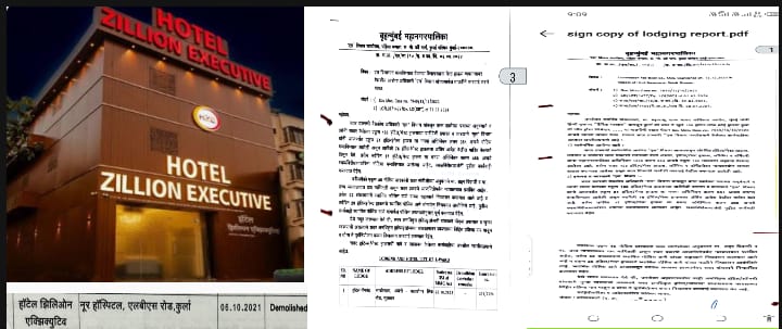 मुंबई (राष्ट्र की परम्परा न्यूज़) – कुर्ला एल विभाग महानगरपालिका वार्ड क्र. 166 में चल रहे अवैध होटल-गेस्ट हाउस पर कार्रवाई के दौरान एक बड़ा फर्जीवाड़ा उजागर हुआ है। नूर हॉस्पिटल, एलबीएस रोड, कुर्ला स्थित होटल झिलियन एक्जक्युटिव (Hotel Jhilian Executive) को मनपा की आधिकारिक रिपोर्ट (दिनांक 06 अक्टूबर 2021) में “निष्कासन पूरा” दिखाया गया है। लेकिन स्थल निरीक्षण में यह होटल अभी भी चालू पाया गया, जिससे यह साबित होता है कि मनपा अधिकारियों ने फर्जी रिपोर्ट बनाकर मानवाधिकार आयोग और न्यायालय को गुमराह किया।