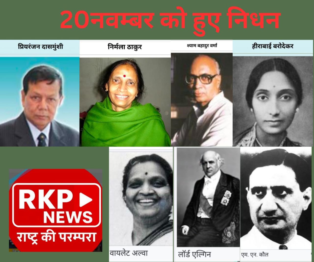 भारत का इतिहास केवल वीरगाथाओं, उपलब्धियों और महत्त्वपूर्ण घटनाओं से ही नहीं बनता, बल्कि उन असाधारण व्यक्तित्वों से भी आकार लेता है, जिन्होंने अपने जीवनकाल में समाज, संस्कृति, राजनीति, साहित्य और कला को नई दिशा दी। 20 नवंबर का दिन भारतीय इतिहास में इसलिए विशेष है क्योंकि इस दिन कई महान आत्माएँ संसार से विदा होकर इतिहास के अमर अध्यायों में दर्ज हो गईं। आइए, इन दिग्गजों के जीवन, योगदान और समाज पर उनके प्रभाव को भावपूर्ण ढंग से याद करें।