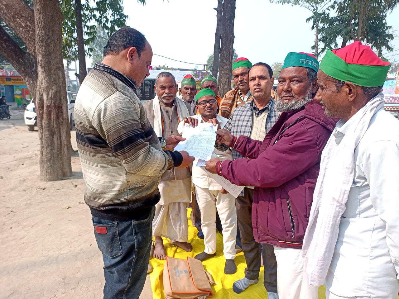 श्रीदत्तगंज,बलरामपुर(राष्ट्र की परम्परा)। स्थानीय विकास श्रीदत्तगंज में भारतीय किसान यूनियन क्रांति दल के अगुवाई में विभिन्न मांगों को लेकर ब्लॉक परिसर में किसान यूनियन द्वारा धरना प्रदर्शन किया गया एवं खण्ड विकास अधिकारी को सम्बोधित ज्ञापन सहायक विकास अधिकारी को सौपा