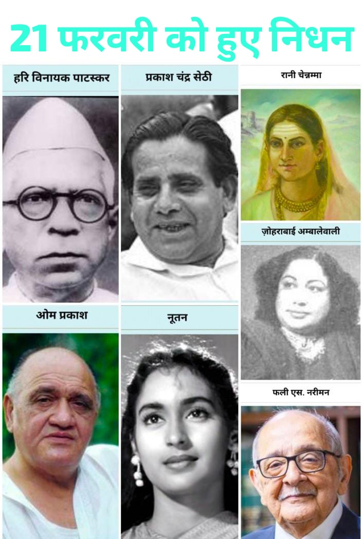 21 फ़रवरी को हुए निधन का इतिहास प्रेरणादायक भी है और भावनात्मक भी। इन विभूतियों का योगदान भारतीय समाज के विभिन्न क्षेत्रों में अमिट छाप छोड़ चुका है। - अस्वीकरण: