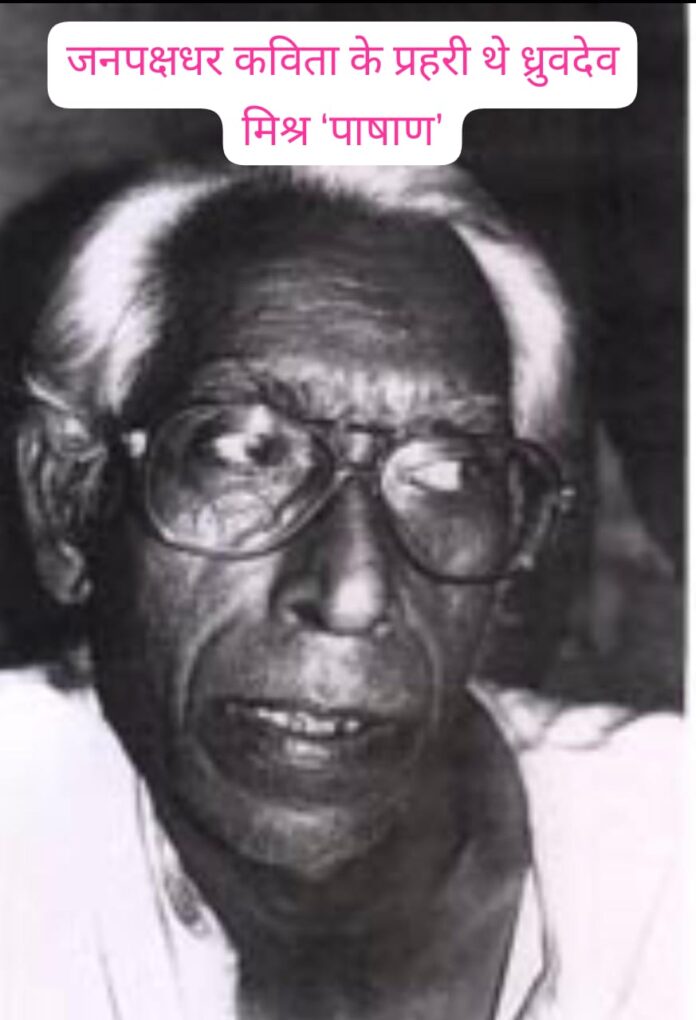 देवरिया (राष्ट्र की परम्परा डेस्क)हिंदी साहित्य के निर्भीक और जनपक्षधर कवि ध्रुवदेव मिश्र ‘पाषाण’ की प्रथम पुण्यतिथि पर साहित्य जगत उन्हें गहरी संवेदना और सम्मान के साथ याद कर रहा है। पाषाण केवल कवि नहीं थे, बल्कि कविता को संघर्ष, विवेक और मनुष्यता का औजार मानने वाले विचारक थे। उनकी रचनाओं में सत्ता, दमन, पाखंड और अन्याय के विरुद्ध तीखी चेतना मिलती है, वहीं प्रेम, प्रकृति और करुणा का कोमल स्पर्श भी समान रूप से उपस्थित रहता है।