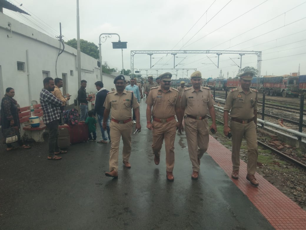 मऊ जंक्शन के रेलवे स्टेशन पर श्रावणी मेला एवं श्रावण मास में ट्रेनों में कांवड़ियों की भीड़ को दृष्टिगत रखते हुए, राजकीय रेलवे पुलिस थाना मऊ के प्रभारी निरीक्षक पंकज कुमार सिंह, प्रभारी निरीक्षक रेलवे सुरक्षा बल पोस्ट मऊ अजय कुमार सिंह साथ अधीनस्थ अधिकारी एवं स्टाफ तथा रेलवे स्टेशन पर कार्य करने वाले कूली, वेंडर्स,सफाई कर्मियों के साथ शनिवार 11:00 से 12:30 बजे तक समन्वय बैठक तथा रेलवे स्टेशन प्लेटफार्म पर आरपीएफ व राजकीय रेलवे पुलिस मऊ द्वारा, सुरक्षा के दृष्टिकोण देखते हुए फ्लैग मार्च किया गया।