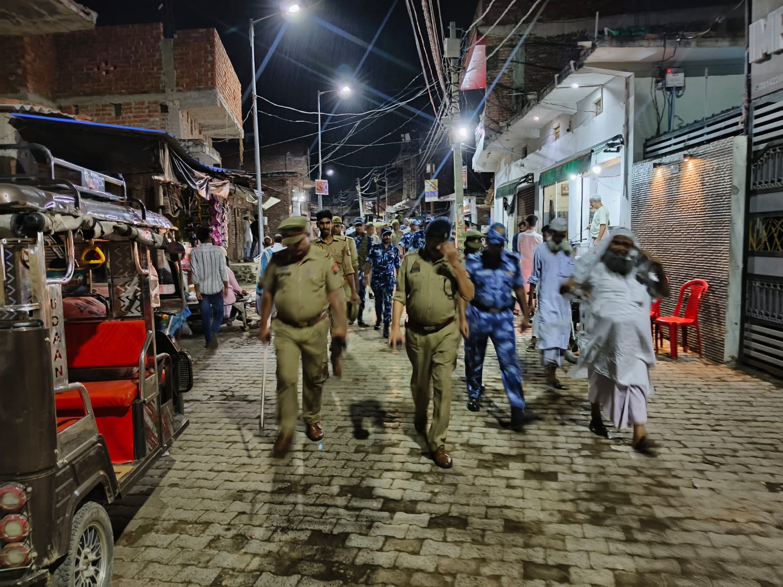 थाना क्षेत्र में चेहल्लुम त्योहार के मद्देनजर शुक्रवार की देर शाम क्षेत्राधिकारी घोसी दिनेश दत्त शर्मा के नेतृत्व में, थानाध्यक्ष नवल किशोर शर्मा एवं सीआईएसएफ के जवानों संग फ्लैग मार्च किया।पुलिस ने थाना मोड़ से पैदल फ्लैग मार्च निकला और कसारा मोड़,भातकोल मोड़,चमन रोड होते हुए पूरे क्षेत्र के भ्रमण किया।इसके बाद कुर्थीजाफ़रपुर,अदरी नगर पंचायत में पुलिस ने फ्लैग मार्च कर सभी से शांति पूर्वक त्योहार मनाने की अपील किया।वही पुलिस की बूट की थाप से सरकश किस्म के लोग सहमे रहे।वही जबतक लोग कुछ समझ पाते पुलिस ने क्षेत्र में शांति का पूर्वक लोगो को अमन चैन से त्योहार मनाने का संदेश दे दिया।वही लोगो को संदेश दिया कि आपलोग शांति पूर्वक त्योहार मनाए पुलिस व्यवस्था को पूर्ण रूप से सम्हाले हुए है।