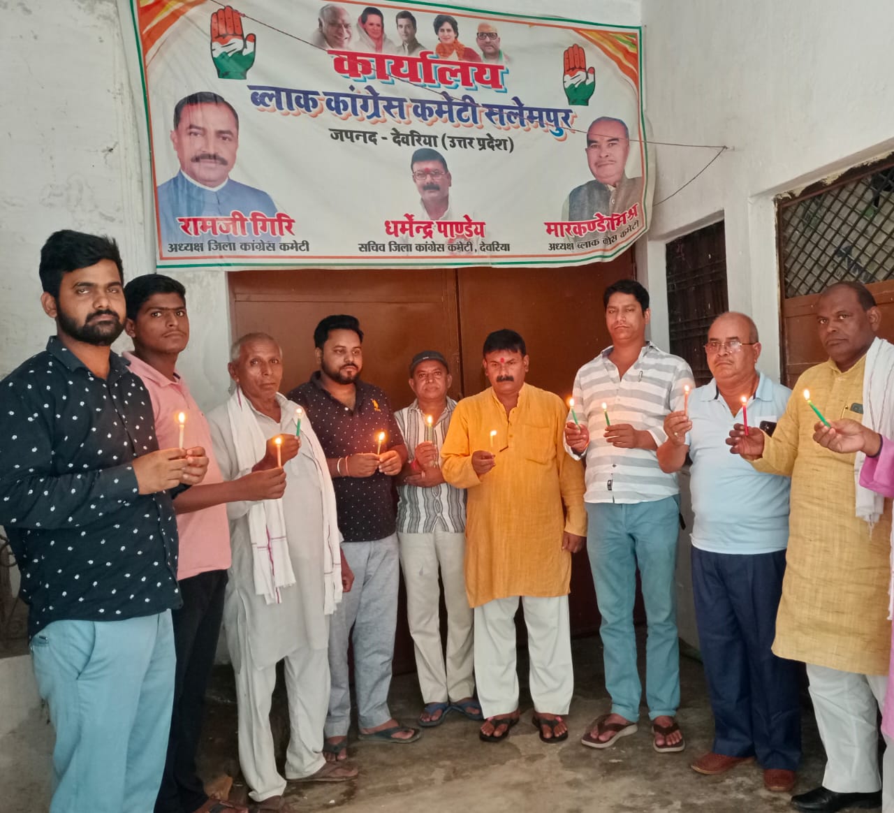 सलेमपुर,देवरिया(राष्ट्र की परम्परा)।पंडित दीनदयाल उपाध्याय आश्रम पद्वति आश्रम विद्यालय मेहरौना में बासी भोजन खाने से फूड प्वायजनिंग के शिकार हुए बच्चों में से मेडिकल कॉलेज गोरखपुर में इलाज के दौरान मृत छात्र शिवम को कांग्रेस कार्यकर्ताओं ने ब्लॉक कार्यालय पर बैठक कर विनम्र श्रद्धांजलि अर्पित किया। इस दौरान सम्बोधित करते हुए जिला महासचिव डॉ धर्मेन्द्र पाण्डेय ने कहा कि बच्चों के जीवन के साथ खिलवाड़ करने वाले दोषियों के खिलाफ हत्या का मुकदमा दर्ज कर उन्हें कठोर सजा दी जाए, जिससे कि कोई भी इस तरह की गलती फिर न करें। जिन बच्चों का इलाज चल रहा है उन्हें और बेहतर इलाज की व्यवस्था की जाए जिससे कि वह जल्द स्वस्थ हो सके। सलेमपुर विधानसभा क्षेत्र के नेता दीनदयाल प्रसाद ने कहा कि गरीब बच्चों के जीवन को खतरे में डालने वाले लोगों को उच्च स्तरीय जांच कराकर असली जिम्मेदार लोगों को सजा दी जाए। युवा कांग्रेस के जिलाध्यक्ष गोविंद मिश्र ने कहा कि अगर दोषियों के खिलाफ उचित कार्यवाही नहीं हुई तो कांग्रेस का एक एक कार्यकर्ता न्याय दिलाने तक संघर्ष करेगा। अंत मे मृत छात्र को कैंडल जलाकर विनम्र श्रद्धांजलि अर्पित किया गया।इस दौरान ब्लॉक अध्यक्ष मार्कण्डेय मिश्र, अभिनीत उपाध्याय, सत्यम पाण्डेय, चुन्नु श्रीवास्तव, सुरेन्द्र यादव, विशाल कुमार,दयाशंकर यादव, रोहित यादव, राहुल मिश्र, उदयनारायण तिवारी, डॉ याहिया अंजुम, सुच्चन खान,मोहन प्रसाद आदि उपस्थित रहे।