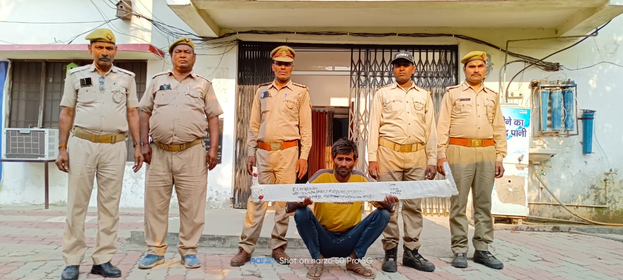 बहराइच (राष्ट्र की परम्परा) प्रभागीय वन अधिकारी कतर्नियाघाट वन जीव प्रभाग बहराइच आकाशदीप वधावन के कुशल नेतृत्व में अवैध कटान एवं अवैध शिकार पर प्रभावी नियंत्रण के संबंध में चलाए जा रहे अभियान के क्रम में गश्ती दल में शामिल वन दरोगा रामदास श्रीवास्तव, वन रक्षक शंकर प्रसाद, वनरक्षक सुनील कुमार, अर्दली धनंजय द्वारा 23 अप्रैल को भारत-नेपाल सीमा के नोमैंस लैंड को पार कर कतर्नियाघाट वन्य जीव विहार के धर्मापुर रेंज के बीच संख्या- 15 कक्ष संख्या- 3 बाघ संरक्षित क्षेत्र में बहुमूल्य प्रजात के साल 1 वृक्ष का अवैध कटान कर राजकीय संपत वन संपदा को क्षति पहुंचाने तथा वन्य जीवों के वास स्थल को नष्ट करने के प्रकरण में शातिर नेपाली अभियुक्त अजय यादव पुत्र मुरारी यादव निवासी गांव खेडा पुरवा थाना गुलरिया जिला बर्दिया राष्ट्र नेपाल को कटान में प्रयुक्त उपकरण आरा सहित मौके से गिरफ्तार कर न्यायालय के समक्ष प्रस्तुत किया। न्यायालय द्वारा अभियुक्त को न्यायिक हिरासत में जेल भेज दिया।
