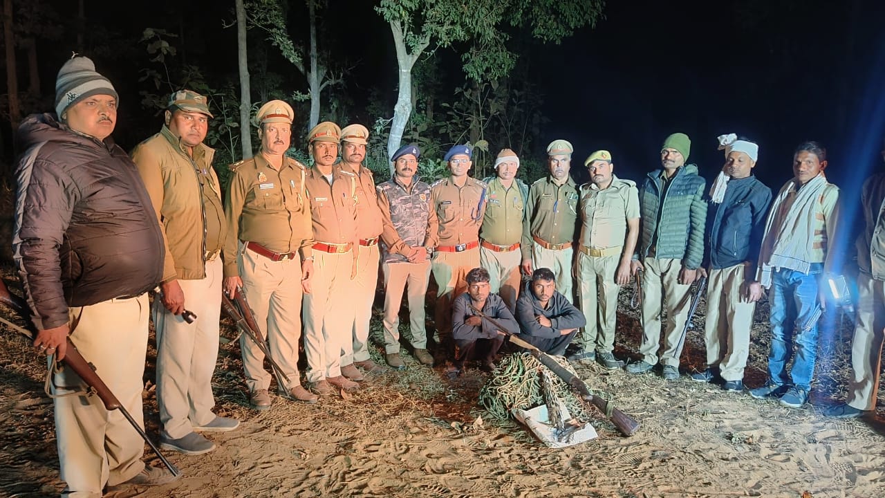 जिस पर क्षेत्रीय वनअधिकारी ने बताया कि शिकारियों से मुड़ भेड़ हुई जिसके बाद घेराबंदी के दौरान लगभग दस शिकारी अवैध असलहों के साथ दिखाईं दिये। जिस पर दोनों टीमों ने शिकारियों के साथ लगभग दो घंटे तक मुठभेड़ हुई जहां 2 शिकारी को दबोचा गया और बाकी मौका से चकमा देकर फरार हो गये। दबोचे गये शिकारियों के पास से शाही जानवर के कांटे एक भरुआ बन्दूक व खाबड़ बरामद हुआ। पकड़े गये शिकारी वीरेन्द्र पुत्र नन्हू उर्म लगभग 20 वर्ष एवं दुसरा शिकारी विरक्षा पुत्र इतवारी उर्म लगभग 22 वर्ष निवासी चौधरी पूर्वा थाना हिर मिनिया जिला बांके राष्ट्र नेपाल के हैं। क्षेत्रीय वन अधिकारी पंकज कुमार साहू ने बताया की मुठभेड़ में वन विभाग के दो वन कर्मियों को कुछ चोट आई है जिसमें वन रक्षक मनोज तिवारी वन रक्षक सुरेश कुमार है जिनका प्राथमिक उपचार चल रहा है। शिकारियों के खिलाफ अपराध पंजीकृत कर न्यायालय हेतु रवाना किया गया। लेकिन एक यह सवाल उठ रहा सीमा सुरक्षा व्यवस्था के बाद फिर जंगल में कैसे घुसते हैं अवैध असलहे के साथ अंतर्राष्ट्रीय शिकारी।
