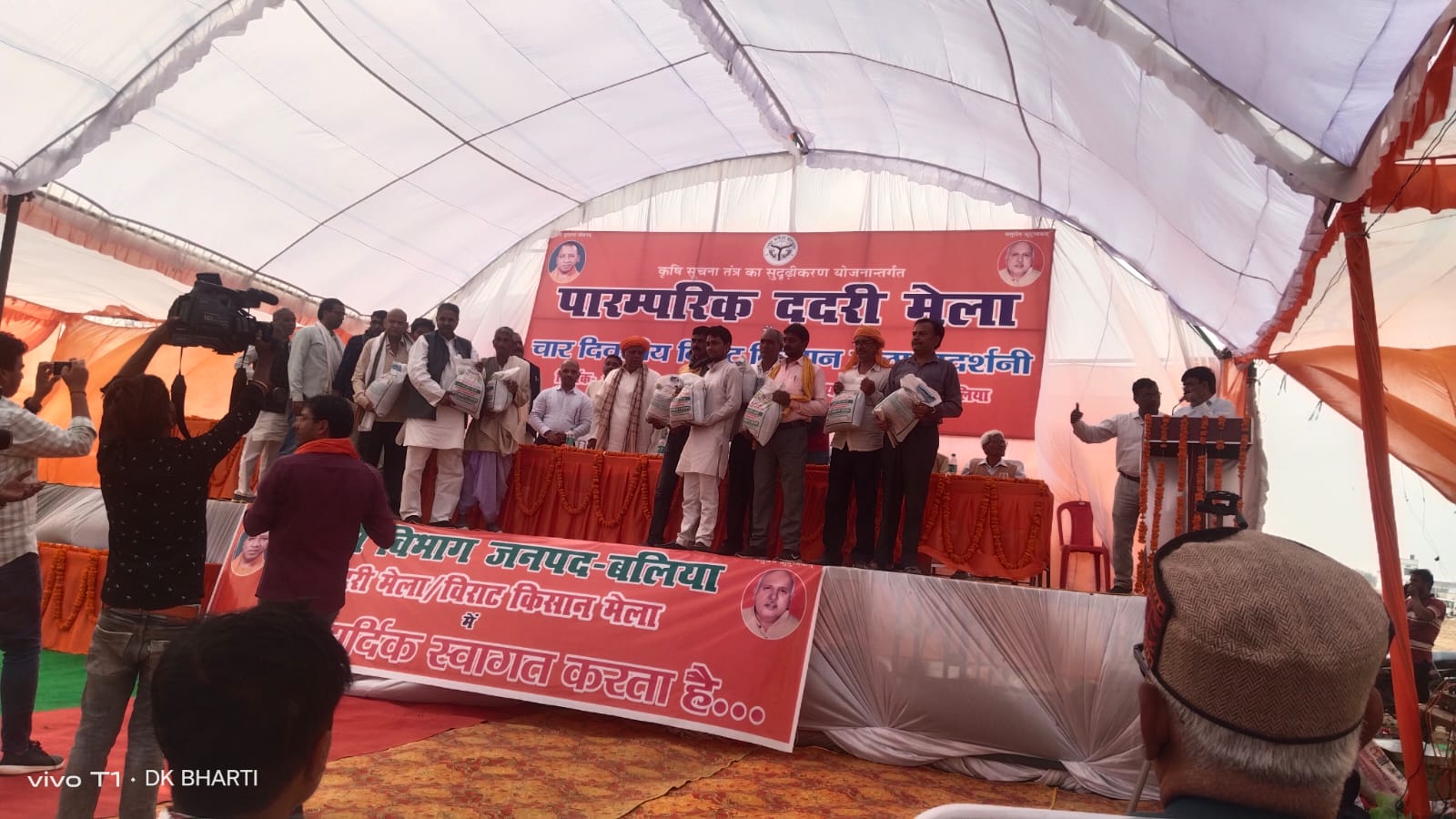 जनपद में कृषि सूचना तंत्र एवं सुदृढ़ीकरण योजनान्तर्गत चार दिवसीय विराट किसान मेला एवं प्रदर्शनी का आयोजन पारंपरिक ददरी मेले में किया गया, जो 17 से 20 नवम्बर तक चलेगा। किसान मेले एवं प्रदर्शनी कार्यक्रम के मुख्य अतिथि सांसद वीरेन्द्र सिंह मस्त द्वारा फीता काटकर, दीपप्रज्वलित कर कार्यक्रम का शुभारंभ किया गया। सांसद का स्वागत इन्द्राज, उप कृषि निदेशक, धमेन्द्र कुमार सिंह जिला कृषि अधिकारी, संतोष यादव भूमि संरक्षण अधिकारी के साथ-साथ कृषक खड़क बहादुर तिवारी, अतरेश सिंह, विनोद कुमार उपाध्याय, वंश बहादुर सिंह, विनोद सिंह, सतीश यादव, अभिनव मिश्रा, एवं श्री गणेश यादव इत्यादि द्वारा किया गया। डा0 रजनीश श्रीवास्तव भारतीय सब्जी उत्पादन संस्थान वाराणसी के द्वारा मटर, टमाटर, गोभी एवं प्याज की उन्नतशील प्रजातियों के बारे में जनकारी प्रदान की गयी। कृषि विशेषज्ञ गोपाल राम डॉ चंदन सिंह पशुपालन व हरिशंकर वर्मा खाद्य प्रसंस्करण विशेषज्ञ, द्वारा कृषक बंधुओं को खेती किसानी पर विभागीय जानकारी प्रदान की गयी।
