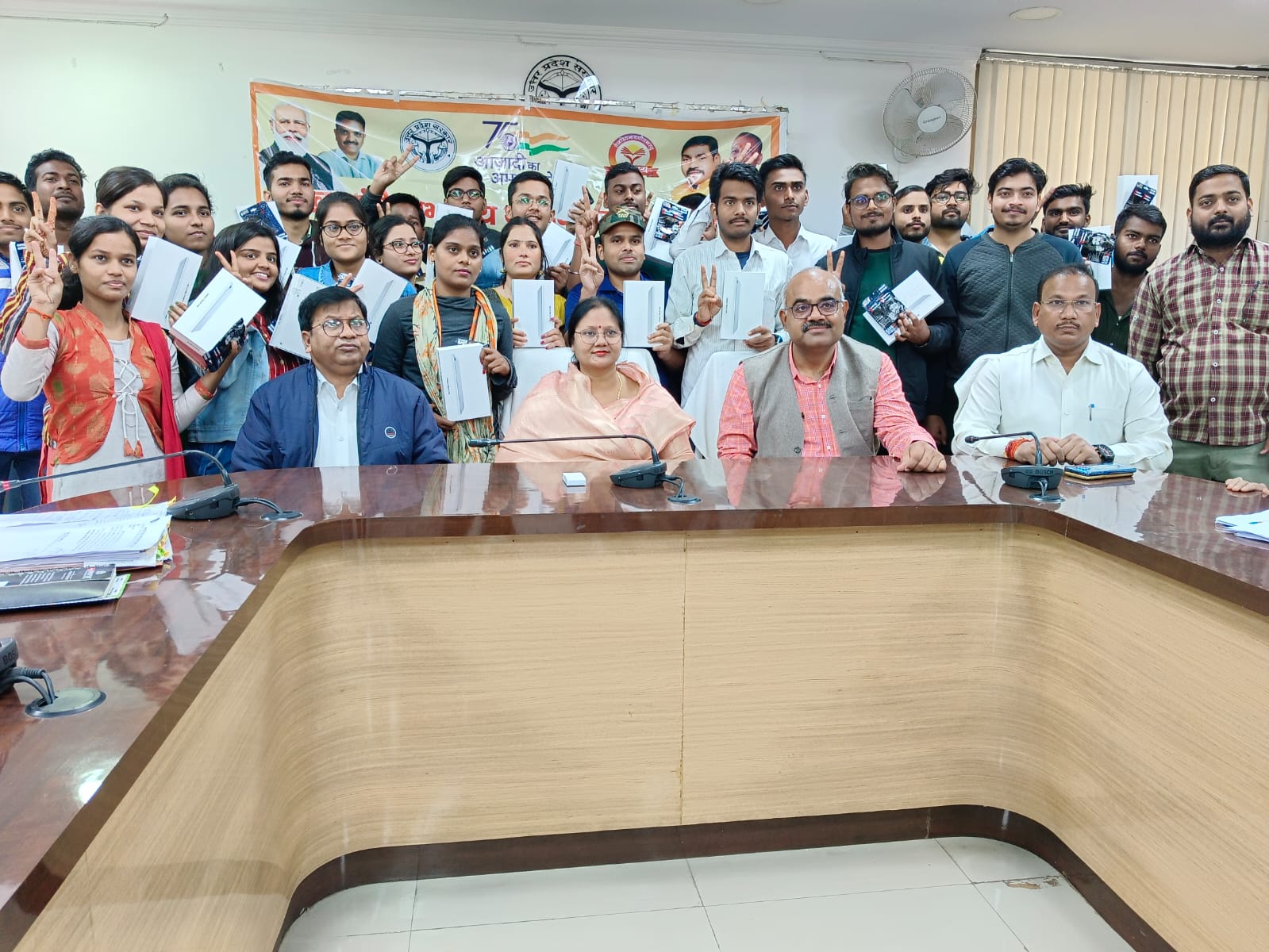 देवरिया (राष्ट्र की परम्परा) मुख्यमंत्री अभ्युदय योजना अंतर्गत रविवार को गांधी सभागार, विकास भवन, देवरिया में योजनांतर्गत मंडल स्तर पर संचालित विभिन्न कक्षाओं के 26 छात्रों को निशुल्क टेबलेट राज्यमंत्री ग्राम विकास विजयलक्ष्मी गौतम, जिलाधिकारी जितेंद्र प्रताप सिंह एवं मुख्य विकास अधिकारी रवींद्र कुमार की उपस्थिति में वितरित किया गया।