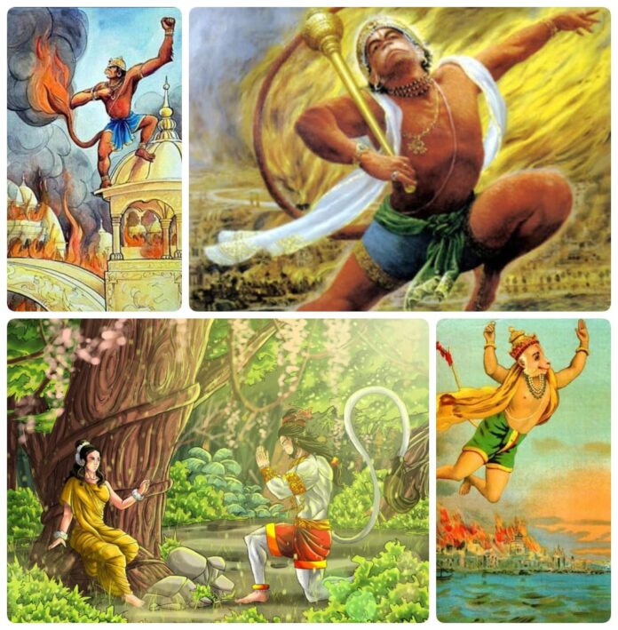 रावण के आदेश पर हनुमान जी की पूंछ में आग लगाई जाती है, किंतु वही आग लंका के लिए विनाश बन जाती है। हनुमान जी पूरी लंका को जलाकर यह संदेश देते हैं कि अधर्म चाहे कितना भी शक्तिशाली क्यों न हो, अंततः भस्म हो जाता है। लंका में हनुमान की लीला का यह प्रसंग सबसे अधिक प्रसिद्ध और प्रेरणादायक है।