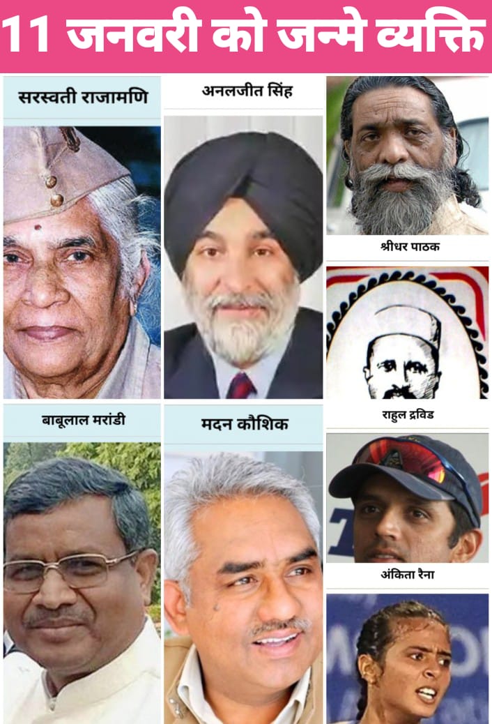 11 जनवरी का दिन भारतीय और विश्व इतिहास में इसलिए विशेष है क्योंकि इस तिथि को जन्मे अनेक व्यक्तित्वों ने अपने-अपने क्षेत्रों में उल्लेखनीय योगदान देकर समाज, राष्ट्र और विश्व को नई दिशा दी। राजनीति, खेल, साहित्य, उद्योग, दर्शन और राष्ट्रसेवा—हर क्षेत्र में 11 जनवरी को जन्मे लोगों की उपलब्धियाँ प्रेरणास्रोत हैं। आइए, इतिहास के इन महत्वपूर्ण जन्मों पर विस्तार से नज़र डालते हैं।