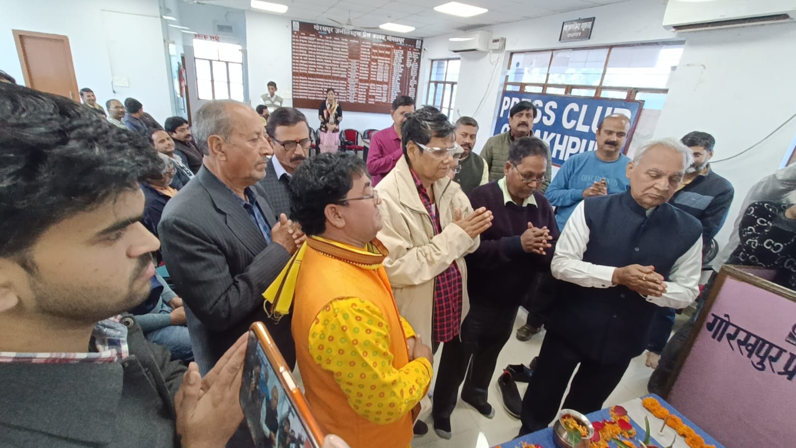 गोरखपुर (राष्ट्र की परम्परा)। जर्नलिस्ट प्रेस क्लब के पुस्तकालय कक्ष(लाइब्रेरी) का विधवत मां सरस्वती के वंदना के साथ फीता काट कर संस्थापक अध्यक्ष एस पी त्रिपाठी सदस्यों वीरेंद्र मिश्रा, दीपक, जय शंकर मिश्रा, राकेश शाश्वत, सुधीर श्रीवास्तव, कौशल त्रिपाठी, अध्यक्ष गोरखपुर जर्नलिस्ट एसोसिएशन रत्नाकर सिंह द्वारा किया गया। नव निर्वाचित कार्यकारिणी ने संस्थापक सदस्यों सहित पूर्व अध्यक्ष अरविंद राय, पूर्व अध्यक्ष अशोक चौधरी, पूर्व मंत्री ओंमकार धर द्विवेदी, पूर्व मंत्री नवनीत प्रताप त्रिपाठी, पूर्व मंत्री विजय जैसवाल, पूर्व मंत्री धीरज श्रीवास्तव, पूर्व उपाध्यक्ष बृजेन्द्र सिंह व कंचन त्रिपाठी, टीपी शाही, उपेंद्र पाण्डेय को नवनिर्वाचित अध्यक्ष रितेश मिश्रा सहित पुरी कार्यकारिणी के साथ वरिष्ट पत्रकार जनो से अंग वस्त्र व माला पहना कर सम्मानित किया गया।