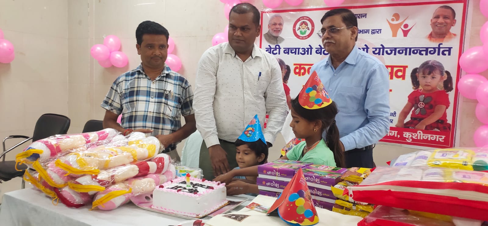 जिला प्रोवेशन अधिकारी विनय कुमार ने बताया कि निदेशक महिला कल्याण, उत्तर प्रदेश, लखनऊ के पत्र एवं महिला एवं बाल विकास मंत्रालय द्वारा दिये गए निर्देश के अनुपालन में गुरुवार को जिला चिकित्सालय रविन्द्र नगर धूस स्थान, पडरौना कुशीनगर में बेटी बचाओ बेटी पढाओ योजना के अन्तर्गत कन्या जन्मोत्सव का आयोजन किया गया, जिसमें आज से 103 दिन पूर्व तक जन्म लिए हुए बच्चियों का जन्मोत्सव मनाया गया, तथा उनकी माताओं निशा पत्नी गोलू, संगीता पत्नी लक्ष्मण, प्रियंका देवी पत्नी रंजित श्रीवास्तव, आशीया पत्नी हरेश आलम,फुलकली पत्नी बेलिस्टर प्रसाद,दुर्गावती देवी पत्नी विनोद कुशवाहा, माया देवी पत्नी संजीव यादव, वन्दना देवी पत्नी विजय प्रताप त्रिपाठी, अंजली पत्नी घनश्याम खरवार, रूना पत्नी विजयशंकर, सहाना खातुन पत्नी अलाउद्दीन, पूनम पत्नी कमलेश नेहा पत्नी दीपू, सदया पत्नी नूर आलम, अनारकली पत्नी विनोद सिंह, पूजा देवी पत्नी शिव कुमार एवं शुभी पत्नी बिक्की मिश्रा को मिष्ठान, सॉल, बेवी किट, गुडिया, इत्यादि को उपहार स्वरूप दिया गया, तथा महिला कल्याण द्वारा संचालित समस्त योजनाओं के विषय में जानकारी दिया गया, जिसमें उ०प्र० मुख्यमंत्री बाल सेवा योजना, उ०प्र० मुख्यमंत्री बाल सेवा योजना (सामान्य) उ0प्र0 मुख्यमंत्री कन्या सुमंगला योजना के विषय में जानकारी दिया गया।