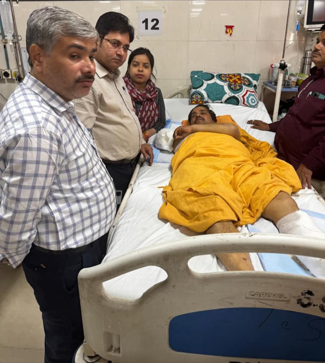 शाहजहांपुर (राष्ट्र की परम्परा)। जिला सहकारी बैंक के महाप्रबंधक सौरभ द्विवेदी बरेली जाते समय ट्रेन से गिरकर घायल हो गए। जीएम सौरभ द्विवेदी ने निलंबित शाखा प्रबंधक सतीश चंद्र वर्मा का लखनऊ जाकर हाल जाना। जबकिं प्रबंधक सतीश की हालत में सुधार बताया गया है। जीएम ने उनके परिवार और उनसे वार्ता कर हर संभव मदद का आश्वासन दिया। बता दें कि 22 मार्च को बरेली जाते समय निलंबित प्रबंधक सतीश चंद्र वर्मा घायल हो गए थे। उनको राजकीय मेडिकल कॉलेज में भर्ती कराया गया था जहां से हालत गंभीर होने पर लखनऊ रेफर कर दिया गया था। रविवार को जीएम सौरभ द्विवेदी, डीजीएम राजेश कुशवाहा, प्रबंधक ददरौल अमित मिश्रा, सचिव राजीव सिंह के साथ लखनऊ पहुंचे। जीएम ने बताया कि सतीश वर्मा की हालत में सुधार है। बैंक की ओर से उनका इलाज एवं अन्य संसाधन उपलब्ध कराए जा रहे हैं, और परिवार को आश्वत किया गया कि हर जरूरत पूरी की जाएगी।