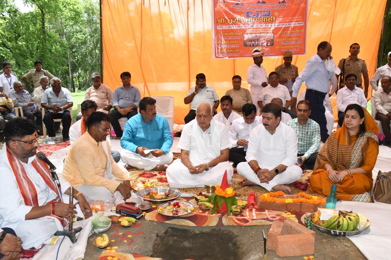 देवरिया(राष्ट्र की परम्परा)। राजकीय इण्टर कालेज देवरिया के प्रांगण में 18.98 करोड़ की लागत से बनने वाले, बालक तथा बालिका छात्रावास, संग्रहालय, वाचनालय, टायलेट ब्लॉक, चहारदीवारी तथा पुराने भवन के जीर्णोद्धार समेत अन्य कार्यो के नवनिर्माण कार्य का शिलान्यास एवं भूमि पूजन कार्यक्रम का आयोजन किया गया। इस अवसर पर मुख्य अतिथि के रूप में कृषि मंत्री सूर्य प्रताप शाही द्वारा विधि विधान से भूमि पूजन और शिलान्यास किया गया ।