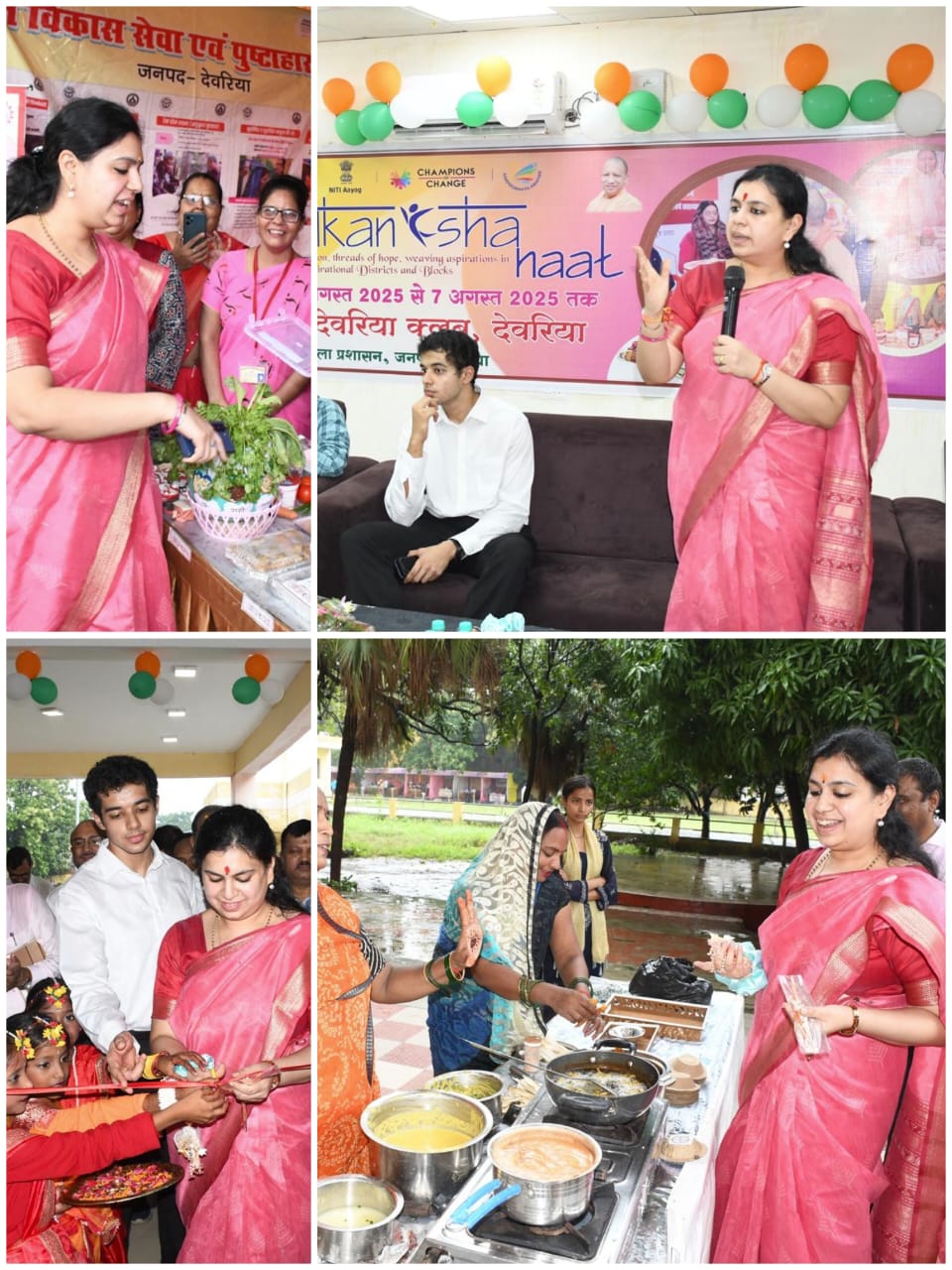 देवरिया (राष्ट्र की परम्परा)। नीति आयोग के तहत देवरिया क्लब परिसर में जनपद स्तरीय आकांक्षा हाट का भव्य शुभारंभ हुआ। जिलाधिकारी दिव्या मित्तल ने उद्घाटन कर विभिन्न विभागों व स्वयं सहायता समूहों के स्टॉलों का अवलोकन व खरीदारी की। वोकल फॉर लोकल’ थीम पर आधारित हाट में 20 स्टॉल लगाए गए, जिनमें कृषि, स्वास्थ्य, ओडीओपी, महिला समूहों द्वारा बनाए गए उत्पादों की बिक्री की गई। पहले दिन ₹7700 की बिक्री दर्ज की गई। डीएम ने कारीगरों व महिलाओं से संवाद कर कार्यों की सराहना की। यह हाट 7 अगस्त तक आमजन के लिए खुला रहेगा।