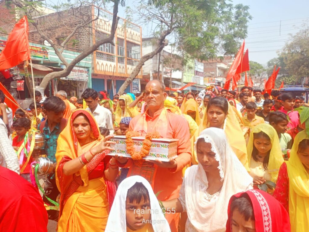शुक्रवार को अनंत पीठ आश्रम बरहज से संगीतमय श्रीराम कथा का आयोजन को लेकर गाजे बाजे, हाथी, घोड़े, के साथ भव्य कलश यात्रा निकाली गई। कलश यात्रा से पहले सर्वप्रथम आश्रम में स्थापित श्री सीताराम, राधा कृष्ण के समक्ष वैदिक मन्त्रो के बीच विद्वानों द्वारा पूजन अर्चन किया गया, ततपश्चात पीठाधीश्वर आञ्जनेय दास महाराज के नेतृत्व में भव्य कलश शोभा यात्रा अनंत पीठ आश्रम से निकली । यह शोभा यात्रा नगर का भ्रमण करते हुए सरयू तट पहुंचा।इस दौरान सारा नगर भक्तिमय हो चला था। बड़ी संख्या में श्रद्धालुओं ने सरयू की पवित्र जलधारा से जल लेकर पुनः वापस आकर अनंतपीठ आश्रम में स्थापित यज्ञशाला में कलश को स्थापित किया गया। इस शोभा यात्रा में अवधधाम से पधारे कथा व्यास धीरज कृष्ण के साथ श्रीराम कथा के आयोजक मंडल के सदस्य गण अंचल पाठक, गिरीश मिश्र, कृष्ण मुरारी तिवारी, विनय मिश्र, अभय पांडेय, हरिशंकर पांडेय, पंकज पाठक, कृष्णा पांडेय, सुजीत वर्मा, कपिल मुनि पाठक, अनमोल मिश्र, अवधेश पाल, ओमप्रकाश दुबे, मोहन प्यारे सोनी, प्रदीप शुक्ल, अंकुर मिश्र, आदर्श पाठक, सुधादेवी, किरण देवी, सविता पांडेय, शकुंतला मिश्रा, रिया सिंह, प्रिया सिंह आकांक्षा मिश्रा, कुमकुम तिवारी, रुचि मिश्रा, रीता यादव, अनुपम मिश्र, हिमांशु शर्मा, आर्यन रावत, केदार रावत आदि श्रद्धालु उपस्थित रहे। भारी भीड़ को देखते हुए स्थानीय प्रशासन के राधेश्याम चौधरी, संतोष यादव, शुभम पाठक, सुभाष यादव, आशीष यादव, कृष्णा यादव, सीमा यादव, पूनम यादव की सुरक्षा व्यवस्था सराहनीय रहा। कथा शाम 5:00 बजे से देर रात 10:00 बजे तक 29 मार्च से 6 अप्रैल तक चलेगी।