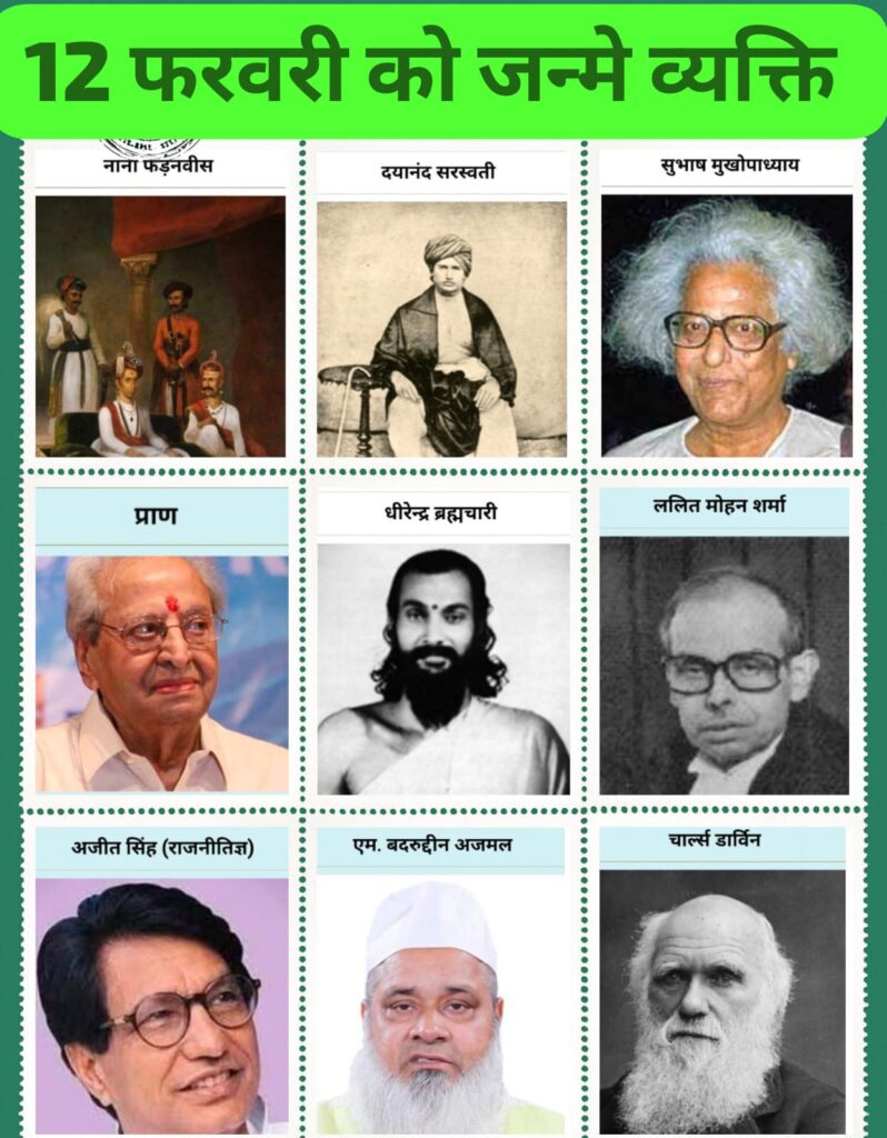 🟢 12 फ़रवरी को जन्मे प्रमुख व्यक्तित्व