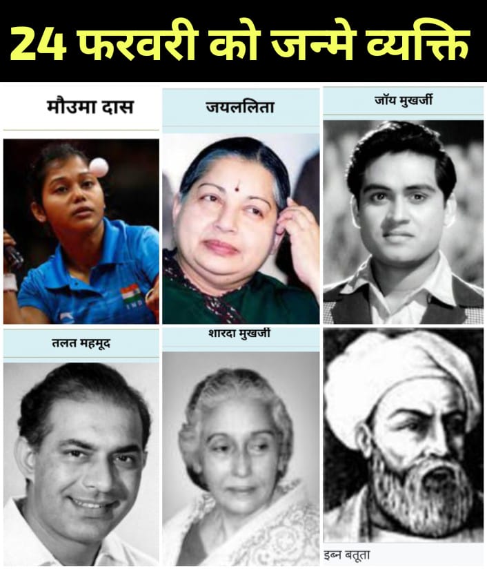 24 फ़रवरी जन्मे व्यक्तित्व इतिहास, राजनीति, कला, संगीत और खेल जगत में अमर हैं।