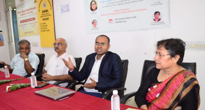 गोरखपुर (राष्ट्र की परम्परा)। दीनदयाल उपाध्याय गोरखपुर विश्वविद्यालय के स्वास्थ्य केंद्र द्वारा अपोलो क्लिनिक गोरखपुर के सहयोग से “डायबिटीज़, मोटापा और हार्मोनल स्वास्थ्य” विषय पर जागरूकता वार्ता का आयोजन किया गया। कार्यक्रम का उद्देश्य शिक्षकों, कर्मचारियों और विद्यार्थियों में जीवनशैली जनित बीमारियों के प्रति जागरूकता बढ़ाना और निवारक स्वास्थ्य देखभाल को प्रोत्साहित करना रहा।