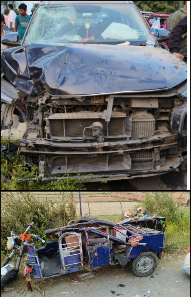 रुपईडीहा से बाबागंज की ओर जा रही कार ने बाबागंज से रुपईडीहा की ओर आ रहे एक ऑटो रिक्शा में सामने से टक्कर मार दी टक्कर इतनी जोरदार थी कि कार के एयरबैग खुल गए और जिससे कार चालक को हल्की फुल्की चोट लगी चालक मोहित सोनी उम्र 30 वर्ष पुत्र नवल किशोर सोनी निवासी पुरानी बाजार बाबागंज के रिश्तेदार प्रमोद सोनी 45 वर्ष , बहन शारदा सोनी 55 वर्ष को हलकी फुलकी चोट आने के कारण नर्सिंग होम बाबागंज में इलाज कराया जा रहा है वहीं रिक्शा चालक तुफैल पुत्र शिबू निवासी नई बस्ती रुपईडीहा को भी चोट लगी है। जिनका इलाज बाबागंज स्थित अस्पताल में चल रहा है।