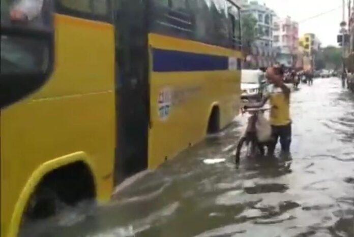 कोलकाता (राष्ट्र की परम्परा डेस्क)। पश्चिम बंगाल में आधी रात के बाद शुरू हुई मूसलाधार बारिश ने राजधानी कोलकाता समेत कई जिलों में जनजीवन को अस्त-व्यस्त कर दिया। लगातार हुई बारिश के कारण सड़कों पर जलभराव हो गया और कई आवासीय परिसरों में पानी घुस गया। भारत मौसम विज्ञान विभाग (IMD) ने चेतावनी दी है कि बंगाल की खाड़ी के उत्तर-पूर्व में बने कम दबाव के क्षेत्र के चलते दक्षिण बंगाल के विभिन्न हिस्सों में भारी से बहुत भारी बारिश की संभावना बनी हुई है।