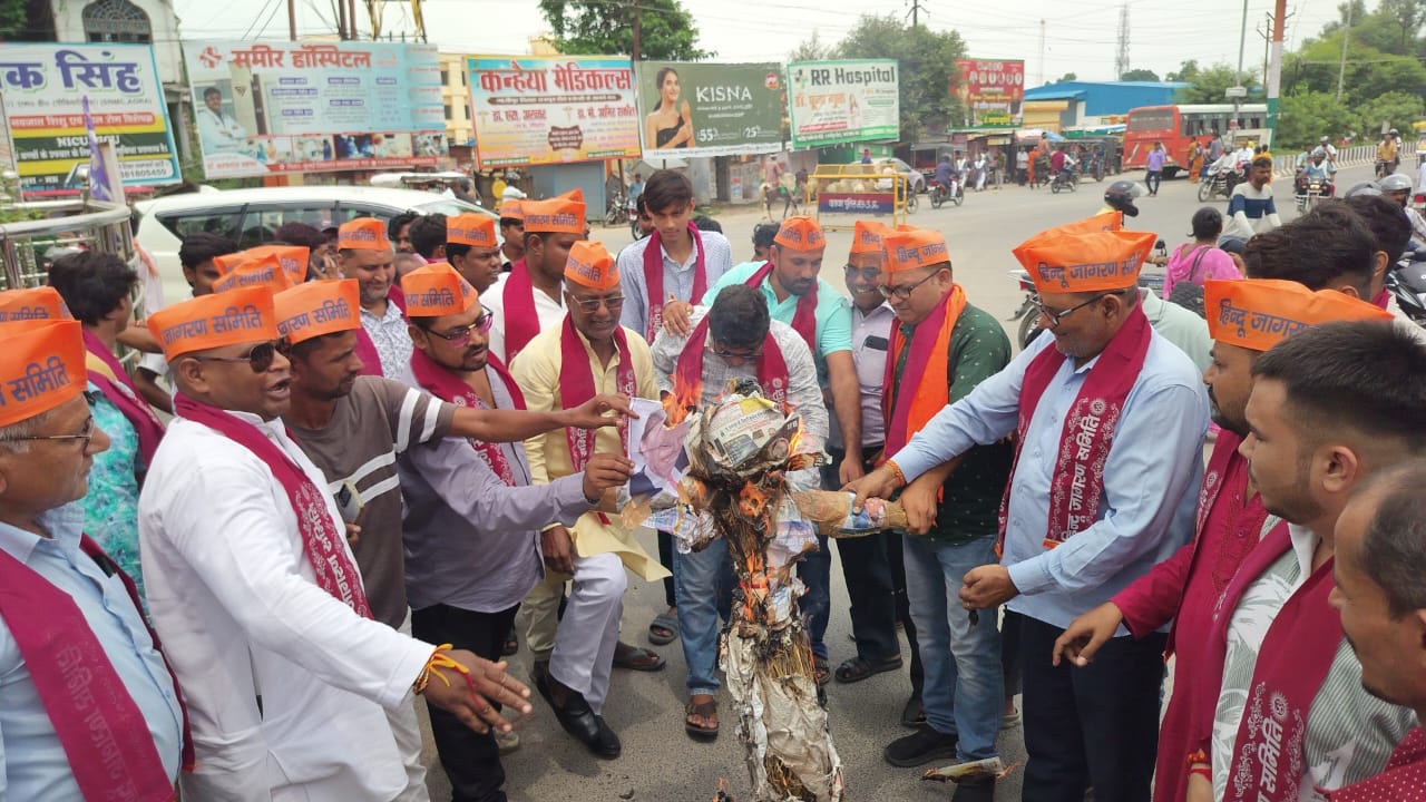 मऊ (राष्ट्र की परम्परा)। अमेरिका के तानाशाह राष्ट्रपति डोनाल्ड ट्रंप द्वारा भारत पर 50% टैरिफ आयात शुल्क लगाने के फैसले के विरोध में, हिंदू जागरण समिति के कार्यकर्ताओं ने गाजीपुर तिराहे पर जोरदार प्रदर्शन किया, अमेरिका प्रशासन के विरोध में जमकर नारे बाजी की l अमेरिकी राष्ट्रपति डोनाल्ड ट्रंप का पुतला दहन कर विरोध प्रदर्शन कियाl इस अवसर पर हिंदू जागरण समिति के राष्ट्रीय अध्यक्ष सुजीत कुमार सिंह ने अमेरिका के राष्ट्रपति डोनाल्ड ट्रंप के द्वारा भारत पर 50% आयात शुल्क लगाए जाने पर अपनी तल्ख प्रतिक्रिया व्यक्त करते हुए कहा कि अमेरिका के इस तानाशाही फरमान से भारत की अर्थव्यवस्था पर गलत प्रभाव पड़ सकता है, उन्होंने कहा कि 50% आयात शुल्क लगाने से भारत के उद्योग व्यापार पर नकारात्मक प्रभाव पड़ेगा और अमेरिका के साथ व्यापार असंतुलन बढ़ेगा कहा कि यह टैरिफ दर भारत के उद्योग कृषि और व्यापार पर सीधा हमला हैl उन्होंने चेतावनी दी और कहा कि अमेरिका के ट्रंप सरकार द्वारा यह निर्णय वापस नहीं लिया गया तो हिंदू जागरण समिति व्यापक पैमाने पर आंदोलन को और तेज करेगी,उन्होंने अमेरिका के इस व्यापार नीति की निंदा करते हुए कहा कि भारत अपने देशवासियों के हितों की रक्षा स्वाभिमान और सम्मान के लिए हर संभव प्रयास करेगी l हिंदू जागरण समिति के प्रवक्ता नरेंद्र सिंह और प्रांत संगठन मंत्री रामकृष्ण भारद्वाज ने कहा कि अमेरिका की यह नीति न केवल भारतीय उत्पादकों के लिए नुकसानदेह है बल्कि अमेरिका सरकार के इस निर्णय से दोनों देशों के आपसी रिश्तों में भी कड़वाहट आएगी l हिंदू जागरण समिति के जिलाध्यक्ष मनीष सिंह, प्रांत मंत्री रवि गुप्ता, अमित वर्मा, रवि सैनी ने कहा कि 50 प्रतिशत टैरिफ से भारत के उद्योग व्यापार पर सीधा असर पड़ेगा, कारोबारी निर्यातको और किसानों को इसकी भारी कीमत चुकानी पड़ेगी l वक्ताओं ने कहा कि अमेरिका प्रशासन का यह निर्णय अविवेकपूर्ण और जल्दी बाजी में लिया गया गलत फैसला है, हिंदू जागरण समिति यूथ ब्रिगेड के अध्यक्ष आर्यन सिंह और जिला प्रवक्ता वीरेंद्र पासवान ने कहा कि अमेरिका प्रशासन का या फैसला भारत अमेरिका व्यापारिक संबंधों मे नई चुनौतियां पैदा करेगा, कहा कि यदि यह टैरिफ बरकरार रहा तो आने वाले समय में इस टैरिफ के भयावह परिणाम सामने आएंगे और भारत और अमेरिका के संबंधों में कड़वाहट पैदा होने की प्रबल संभावना है। कहा कि भारी आयात शुल्क लगाया जाना तानाशाही का प्रतीक है इस निर्णय से भारतीय निर्यातकों को भारी नुकसान का सामना करना पड़ सकता है और इसका प्रभाव मैत्री संबंधों पर प्रतिकूल प्रभाव पड़ सकता है। नगर अध्यक्ष रोशन सोनी ने कहा कि अमेरिका प्रशासन अपने फैसले पर पुनः विचार करें उन्होंने अमेरिक