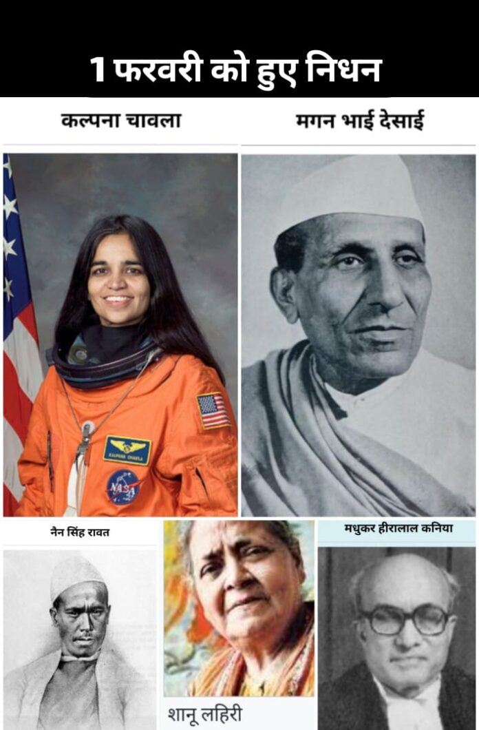 1 फ़रवरी को हुए निधन भारतीय और वैश्विक इतिहास में विशेष स्थान रखते हैं। इस दिन देश ने ऐसे वैज्ञानिकों, न्यायविदों, खोजकर्ताओं, शिक्षाविदों और अंतरिक्ष नायकों को खोया, जिनका योगदान आज भी हमारी स्मृतियों में जीवित है।