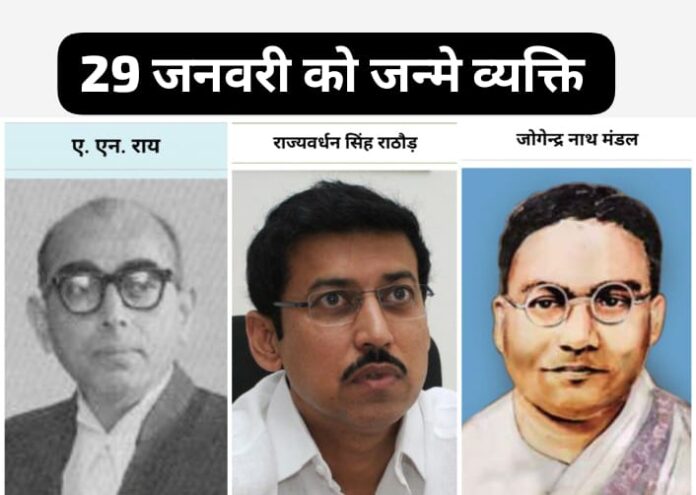 29 जनवरी को जन्मे महान व्यक्तित्व में जोगेंद्र नाथ मंडल का स्थान राजनीतिक और संवैधानिक इतिहास में अत्यंत महत्वपूर्ण है। वे पाकिस्तान के पहले कानून मंत्री बने और दलित अधिकारों के प्रखर समर्थक रहे।