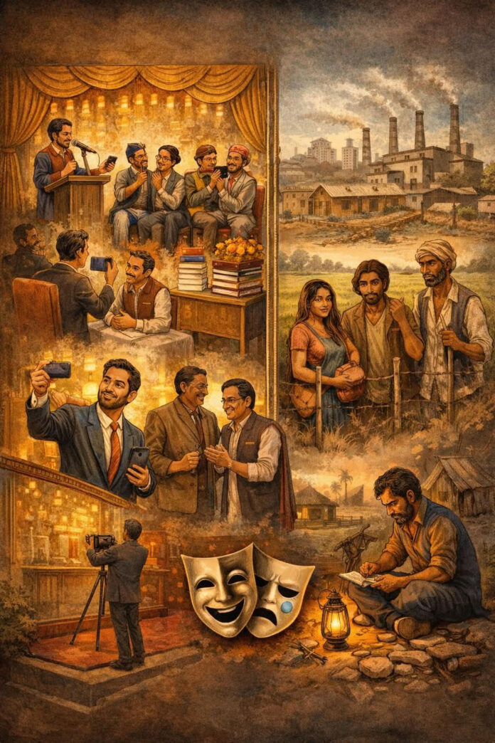 बड़े साहित्यिक संस्थानों, अकादमियों और विश्वविद्यालयों में आयोजित कार्यक्रमों की तस्वीरें सोशल मीडिया पर आम हैं। मंच पर सम्मान, शॉल और प्रशस्ति-पत्र दिखाई देते हैं। समस्या सम्मान से नहीं, बल्कि उसके आधार से है। यह सवाल लगातार उठता है कि क्या ये सम्मान सामाजिक प्रभाव पैदा करने वाली रचनाओं को दिए जा रहे हैं या फिर आपसी संबंधों और पहुँच के कारण।