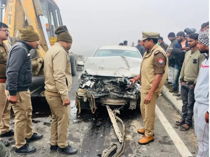 एनएच-24 पर कार-बस की भीषण टक्कर: गर्भवती महिला की मौत, तीन गंभीर रूप से घायल