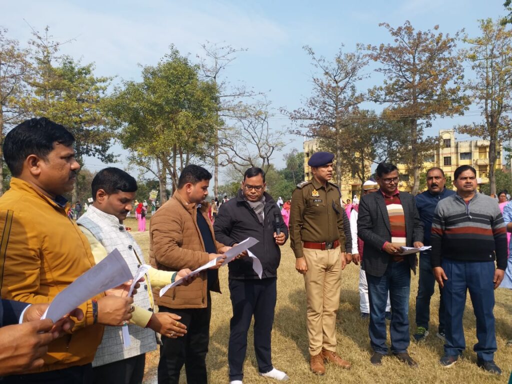 आपको बताते चलें कि सोमवार को दिन के 12:00 तहसील परिसर में दर्जनों विद्यालयों के छात्र छात्राओं ने पहले नेताजी सुभाष चंद्र बोस के चित्र पर माल्यार्पण किया, उसके बाद सड़क सुरक्षा अभियान रैली निकाली, यह रैली तहसील से होते हुए,करुअना बाईपास होते हुए पूरे बरहज का भ्रमण कर, पुनः तहसील परिसर में स्थगित किया गया। सड़क सुरक्षा अभियान के तहत उप जिलाधिकारी गजेंद्र कुमार सिंह ने, लोगों को बिना हेलमेट के गाड़ी न चलाने के लिए लोगों को शपथ दिलाई, उपजिलाधिकारी ने बताया कि आज से हम सभी लोग संकल्पित हो कि हम बिना हेलमेट और सीट बेल्ट की ड्राइविंग नहीं करेंगे, साथ ही आउटसाइड तेज रफ्तार से बाइक नहीं चलाएंगे, पीछे बैठे लोगों को बिना हेलमेट के लेकर नही जाएंगे। उन्होंने बताया कि जीवन बहुत ही अनमोल है लेकिन जरा सी असावधानी के कारण लोग हादसे का शिकार होते जा रहे हैं, और लोगों के परिवारो पर दुःखो का पहाड़ टूट पड़ता है। अतः आज से और अभी से हम सभी लोग तटस्थ होकर यह संकल्प लें कि, बिना सीट बेल्ट और हेलमेट पहने ड्राइविंग नहीं करेंगे। नगर पालिका के कर्मचारियों एवं अधिकारियों तथा आशा बहनों ने तहसील परिसर में भारत का नक्शा बनाया, जिसमें नगर पालिका ने मानव श्रृंखला के अवसर पर लोगों को स्वस्थ रहने के लिए सिंगल पॉलिथीन यूज़ न करने की बात कहीं, लेकिन संपर्क सूत्रों की माने तो स्थानीय लोगों का कहना है कि, नगर पालिकापरिषद के अधिकारी और कर्मचारियों को जिले के अधिकारियों का नाम तक पता नहीं , उनके बैनर पर पुर्व सी आर ओ अमृत लाल बिंद जो 2 माह पहले रिटायर हो चुके हैं, और अपर जिला प्रशासन कुंवर पंकज का नाम अंकित हैं। उप जिलाधिकारी के निर्देश के बाद भी बैनर पर पुर्व सी आर ओ अमृत लाल बिंद एवं पूर्व अपर जिलाधिकारी कुंवर पंकज के नाम पर सफेद पट्टी लगाई गई।
