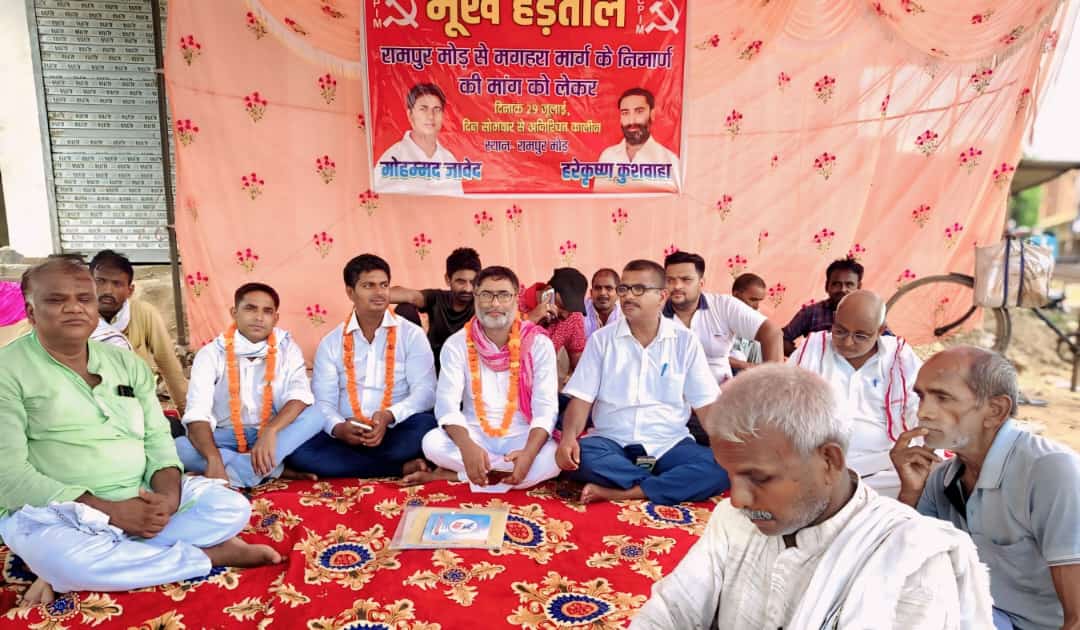 सलेमपुर/देवरिया(राष्ट्र की परम्परा) भारत की कम्युनिस्ट पार्टी मार्क्सवादी सलेमपुर के कार्यकर्ताओं द्वारा सलेमपुर के रामपुर मोड़ पर पूर्व निर्धारित कार्यकर्म के तहत अनिश्चित कालीन भूख हड़ताल शुरू किया गया । इस भूख हड़ताल की शुरुआत कामरेड संजय गोंड की अध्यक्षता में हुई । जिसका संचालन बलविंदर मौर्य ने किया माकपा कार्यकर्ता कामरेड हरेकृष्णा ,जावेद हाशमी और कामरेड संजय कुमार गोंड प्रथम दिन भूख हड़ताल पर बैठे इनको राज्य सचिव मंडल के साथी कामरेड रवि मिश्रा ने और राज्य कमेटी सदस्य कामरेड सतीश कुमार ने फूल माला पहनाकर उनका हौसला बढ़ाया इस दौरान सभा को संबोधित करते हुए रवि मिश्रा ने कहा कि आज सिर्फ रामपुर मोड़ से मगहरा ही नहीं पूरे क्षेत्र की सड़क जर्जर है। ये रोड मोदी और योगी सरकार के विकास के पोल खोलते हैं सलेमपुर सूबे के मुखिया के नजदीक का जिला है । माकपा कार्यकर्ता भूख हड़ताल पर बैठे हैं इस सड़क को जर्जर बने आठ सालों से ऊपर हो गया 5 सालों से तो इस रोड पर लगातार दुर्घटना हो रही है । ठेकेदार और पीडब्ल्यूडी के अधिकारी मिलकर लूट मचा रखे हैं पिछले 5 साल से ठेकेदार द्वारा दोनों साइड मोती गिट्टी डालकर छोड़ दिया गया जिससे सैकड़ो गांव प्रभावित है कई लोगों के हाथ पैर टूट चुके हैं यही हाल पूरे सलेमपुर के सड़कों की है इस सभा को संबोधित करते हुए कामरेड सतीश कुमार ने कहा कि इस प्रदेश में भाजपा की सरकार सड़कों के जाल बिछाने के बारे में बात करती है लेकिन ग्रामीण सड़कों की क्या हालत है यह पूरे क्षेत्र में और पूरे प्रदेश के खस्ता हाल है। जनता से मोटी टैक्स वसूलना इस सरकार की प्राथमिकता है इस सभा को जिला कमेटी सदस्य कामरेड प्रेमचंद यादव, कामरेड जावेद कामरेड सुशील यादव, ने संबोधित किया इस आंदोलन में राम छोटू चौहान, प्रेमचंद यादव,कामरेड शिव शंकर यादव ,अनिल यादव ,केश्वर प्रसाद ,विजय कुशवाहा, निगम जी , कामरेड केदारनाथ, इंदु देवी।सहित सैकड़ो साथी उपस्थित रहे ।