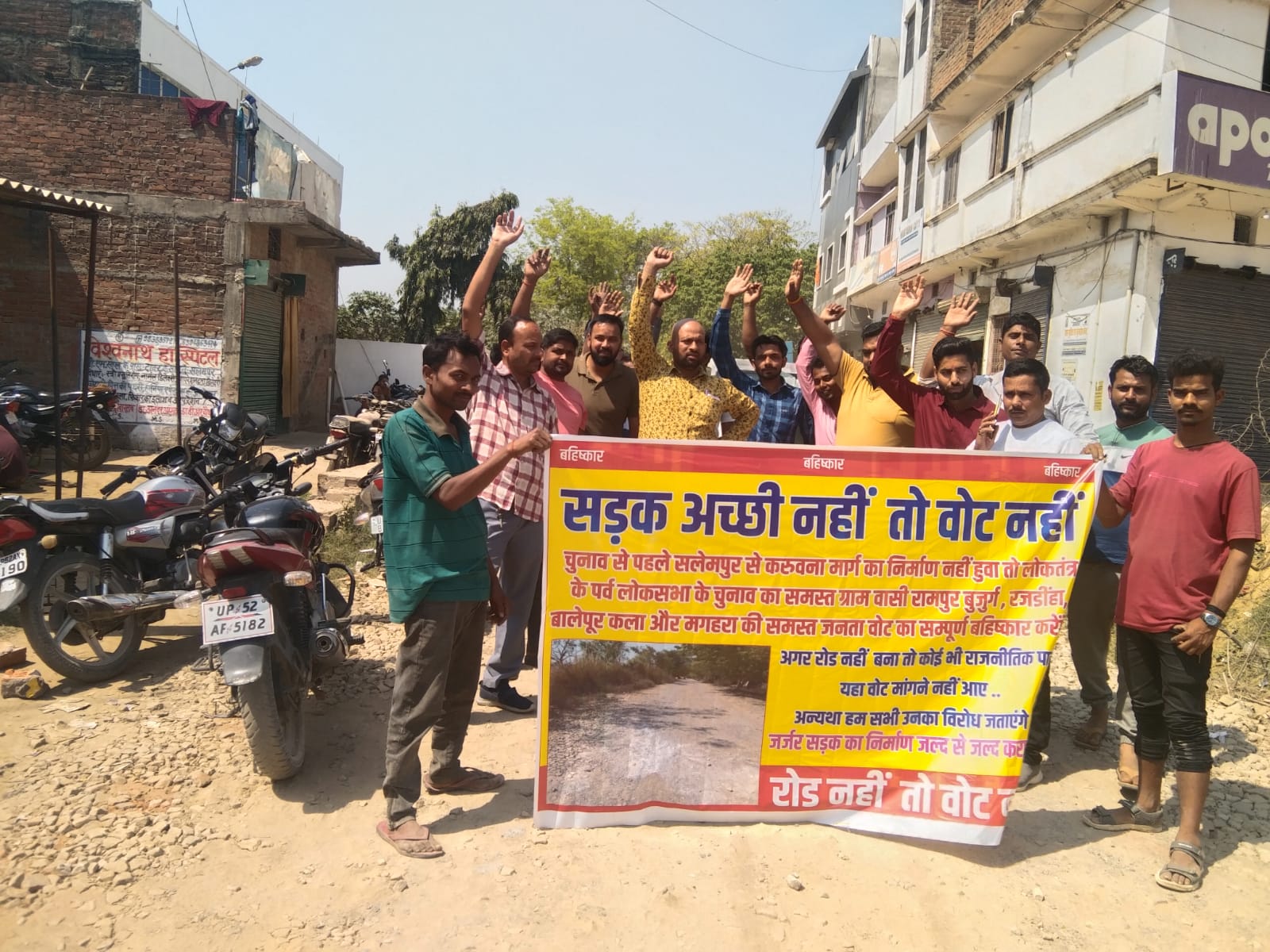सलेमपुर/देवरिया(राष्ट्र की परम्परा) चुनाव का बिगुल बजते ही जनता ने भी सलेमपुर लोकसभा में विरोध का बिगुल बजा दिया है । जगह जगह जनता अपनी समस्याओं को लेकर विरोध प्रदर्शन कर रही है कही कही नेता का भी विरोध देखने को मिल रहा है ।ताजा मामला सलेमपुर से करूअना मार्ग का है। इस मार्ग के निर्माण हेतु सालो पहले निविदा का आवंटन हुआ लेकिन कार्य शुरू नहीं हो सका फिर इस रोड के निर्माण हेतु सलेमपुर सांसद ने पहल किया तो ठेकेदार द्वारा कार्य प्रारंभ कराया गया लेकिन कुछ कार्य करने के बाद फिर मामला शांत हो गया ।अब चुनाव के नजदीक आने से जनता भी अपना गुस्सा निकाल रही है जगह जगह पोस्टर बैनर लेकर विरोध प्रदर्शन कर रही है । सलेमपुर से करूअना जाने के लिए एक यही मुख्य मार्ग है। जो सालो से खस्ता हाल है सांसद सलेमपुर के प्रयासों से कार्य शुरू हुआ लेकिन अब ठंडे बस्ते में है । इस मांग को लेकर ग्राम वासियों ने नारा दिया रोड नही तो वोट नहीं ।इस मौके पर सैकड़ो की संख्या में ग्रामीण ग्राम रामपुर बुजुर्ग,बालेपुर कला, राजडीहा,मगहरा आदि गावो से लोग उपस्थित रहे ।ग्रामीणों द्वारा एक बैनर ग्राम सभा के बाहर लगाया गया है जिसमे लिखा गया है की कोई भी किसी भी पार्टी का नेता ग्राम सभा में प्रवेश न करे जबतक रोड का निर्माण नहीं हो जाता ।यदि कोई नेता प्रवेश करता है तो ग्रामीण उसका पुरजोर विरोध करेंगे।