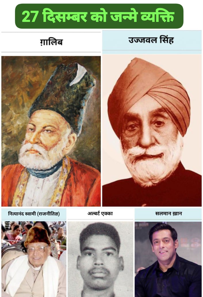 27 दिसंबर भारतीय और वैश्विक इतिहास में एक विशेष दिन है। इस तिथि को जन्मे व्यक्तित्वों ने कला, संस्कृति, साहित्य, राजनीति और राष्ट्रसेवा के क्षेत्र में अमिट छाप छोड़ी है। आइए 27 दिसंबर को जन्मे ऐसे ही महान लोगों के जीवन, जन्म-स्थल और देशहित में उनके योगदान पर विस्तार से दृष्टि डालते हैं।