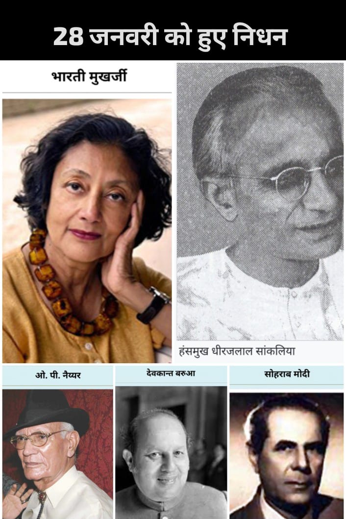 इतिहास केवल तिथियों का क्रम नहीं, बल्कि उन महान व्यक्तित्वों की स्मृति है जिन्होंने अपने कर्म, कृतित्व और विचारों से समाज को दिशा दी। 28 जनवरी का इतिहास कई ऐसी विभूतियों के निधन से जुड़ा है, जिनका योगदान साहित्य, सिनेमा, संगीत, राजनीति और पुरातत्त्व के क्षेत्र में अमिट है।