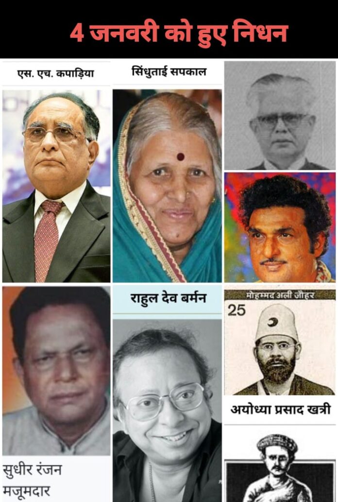 भारत और विश्व इतिहास में 4 जनवरी वह तारीख है, जब अनेक ऐसी महान विभूतियों का निधन हुआ, जिन्होंने समाज, संस्कृति, न्याय व्यवस्था, संगीत, साहित्य और मानव सेवा के क्षेत्र में अमिट योगदान दिया। इन विभूतियों का जीवन संघर्ष, सेवा और समर्पण की मिसाल रहा है। आइए जानते हैं 4 जनवरी को हुए प्रमुख ऐतिहासिक निधन और उनके योगदान को विस्तार से।