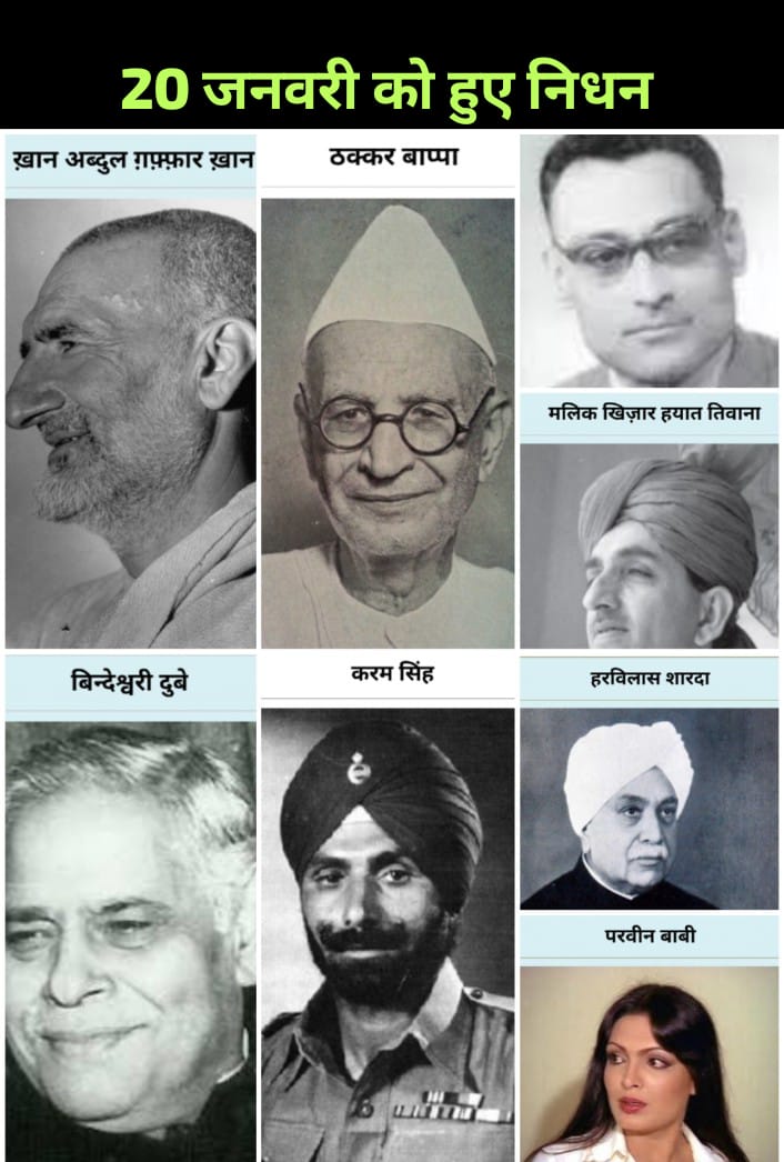 भारत रत्न से सम्मानित ख़ान अब्दुल ग़फ़्फ़ार ख़ान महान स्वतंत्रता सेनानी और अहिंसा के प्रबल समर्थक थे। उन्हें “सीमांत गांधी” कहा जाता है। उन्होंने पठान समाज में अहिंसक आंदोलन को मजबूत किया। उनका निधन स्वतंत्रता आंदोलन की नैतिक विरासत का अपूरणीय क्षण था।