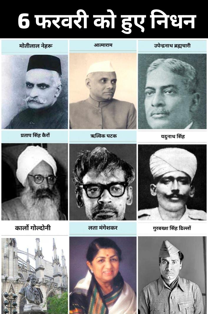 6 फ़रवरी को हुए महत्वपूर्ण निधन हमें यह याद दिलाते हैं कि महान व्यक्तित्व शरीर से विदा हो सकते हैं, लेकिन उनके विचार, कर्म और योगदान सदैव जीवित रहते हैं। यह दिन भारतीय और विश्व इतिहास में सम्मान और स्मरण का प्रतीक है।