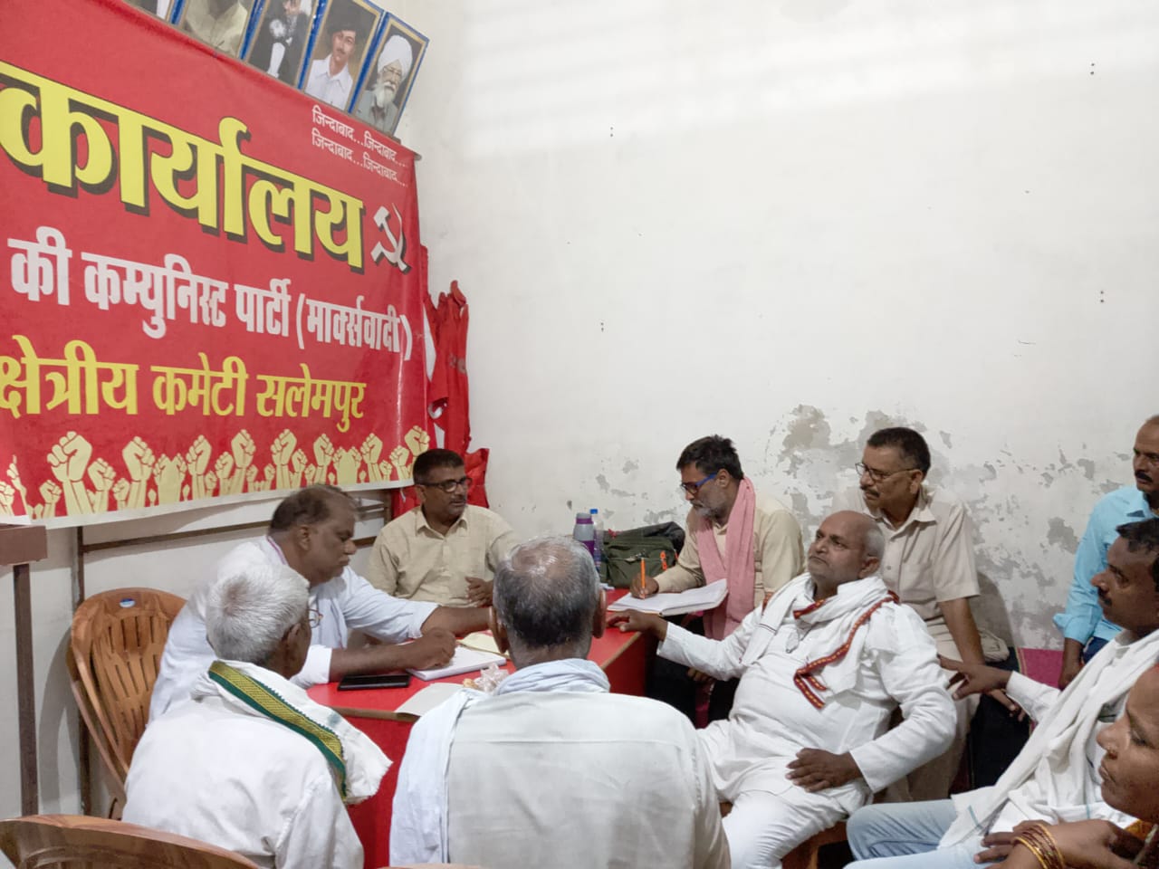 सलेमपुर/देवरिया(राष्ट्र की परम्परा)अखिल भारतीय खेत मजदूर यूनियन जिला कमेटी देवरिया की बैठक सीपीआईएम क्षेत्रीय कार्यालय सलेमपुर में कामरेड हरिवंश प्रसाद की अध्यक्षता में संपन्न हुई बैठक में प्रदेश अध्यक्ष सतीश कुमार भी मौजूद रहे, बैठक में 21,22,23, प्रशिक्षण के लिए साथियों का नाम तय किया गया 5 जुलाई को बिजली के सवाल को लेकर सलेमपुर भलुअनी में धरना देने का निर्णय लिया गया बैठक में हरिवंश प्रसाद जिला अध्यक्ष, रामनिवास यादव जिला मंत्री हरे कृष्ण कुशवाहा, प्रेमचंद यादव,बालविंदर मौर्या, गंगा देवी,तारा देवी,लीलावती देवी,उर्मिला देवी,राम छोटू चौहान, दुर्गेश पासवान, शिव शंकर यादव, राजेंद्र गुप्ता, नियाज अहमद, दर्शन प्रजापति, दुर्गेश पासवान बैठक में भाग लिए जिसमें निर्णय लिया गया जुलाई के प्रथम माह में मनरेगा का सवाल, राशन कार्ड का सवाल,जर्जर सड़कों को लेकर धरना एवं प्रदर्शन किया जाएगा साथ ही साथ सदस्यता एवम फंड अभियान भी चलाया जाएगा आप का जिला मंत्री रामनिवास यादव