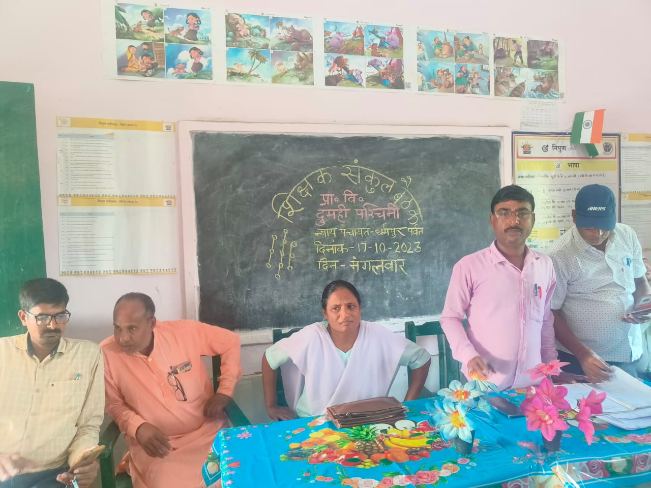 यह बातें मंगलवार को दुदही विकास खंड के धर्मपुर न्याय पंचायत के प्राथमिक विद्यालय दुमही पश्चिम में आयोजित संकुल शिक्षकों की बैठक को संबोधित करते नोडल संकुल शिक्षक बालकृष्ण ने कही। नोडल संकुल शिक्षक प्रणव प्रकाश गिरी ने कहा कि शिक्षक संकुल के विद्यालयों को दिसम्बर 2023 तक निपुण विद्यालय का लक्ष्य प्राप्त किया जाना है। निपुण विद्यालय बनाने हेतु दिए गए पांच प्वाईंट टूल किट का प्रयोग करें। बैठक में निपुण अभियान की शत प्रतिशत सफलता हेतु महत्वपूर्ण योजना बिंदुओं पर चर्चा कर3 क्रियान्वयन पर जोर दिया गया। समस्त शिक्षकों को निपुण लक्ष्य ऐप पर लागिन करने, अक्टूबर माह में ऐप के माध्यम से प्रत्येक छात्र का आंकलन करने, निपुण लक्ष्य ऐप पर प्रदर्शित नये फीचर निपुण संवाद का प्रयोग किये जाने व निपुण भारत मानीटरिंग सेंटर पोर्टल का नियमित उपयोग करने हेतु प्रेरित किया गया। इस दौरान नोडल संकुल शिक्षक