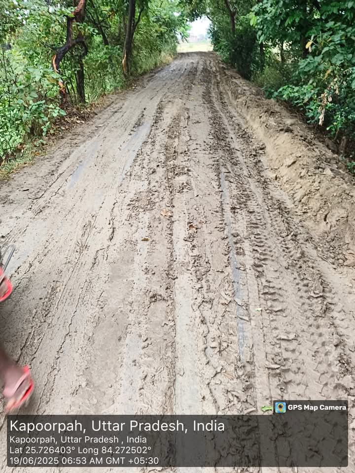 बरसात के चलते सड़क पर कीचड़ और गड्ढे भर गए हैं, जिससे मोटरसाइकिल और पैदल चलना भी मुश्किल हो गया है। उच्चाधिकारियों के आदेश के बावजूद सड़कों के पुनर्निर्माण का कार्य नहीं हुआ।
