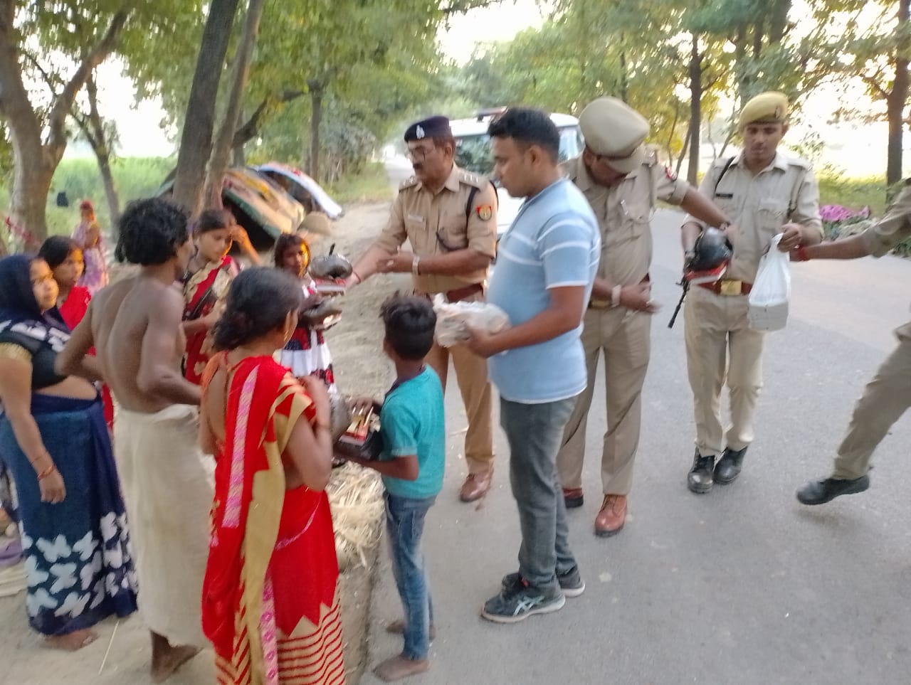 बरहज तहसील क्षेत्र करूअना के मलिन बस्ती में पहुंच कर सड़क के किनारे रह रहे लोगों में क्षेत्राधिकारी व थानाध्यक्ष बरहज के द्वारा मिठाई बिस्किट का पैकेट एवं मोमबत्ती तथा मिट्टी का दिया बाटा गया।