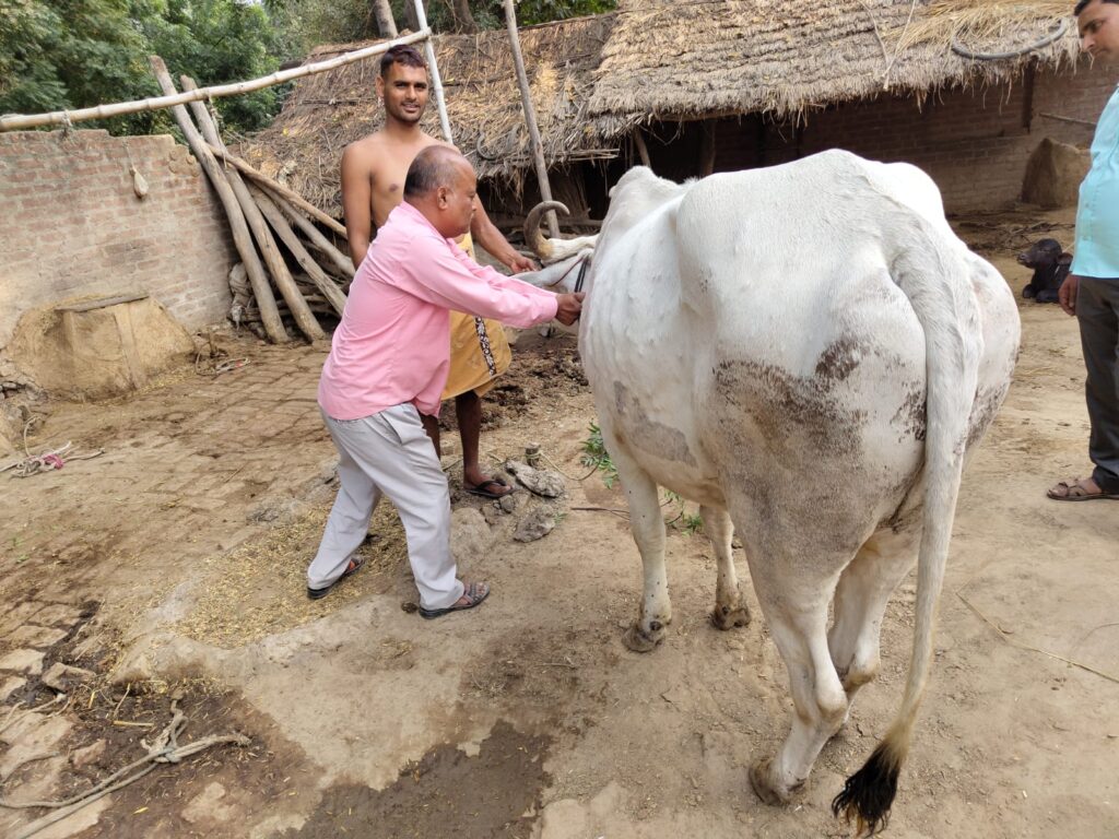 फोटो परिचय-क्षेत्र के गांव भिटारा में लंपी वायरस को लेकर पशुपालन विभाग की टीम ने वैक्सीनेशन किया।