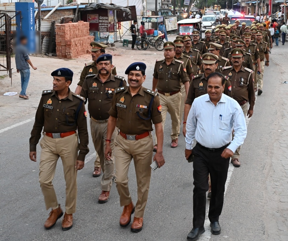 आगामी लोकसभा चुनाव 2024 व त्योहारों के दृष्टिगत जनपद में शान्ति, सुरक्षा व कानून व्यवस्था बनाये रखने हेतु पुलिस अधीक्षक बाराबंकी दिनेश कुमार सिंह द्वारा अपर पुलिस अधीक्षक उत्तरी सी0एन0 सिन्हा, नवाबगंज एसडीएम, क्षेत्राधिकारी जगत कन्नौजिया प्रभारी निरीक्षक कोतवाली नगर अजय कुमार त्रिपाठी व महिला थाना प्रभारी मुन्नी देवी मय पुलिस बल के साथ थाना कोतवाली नगर क्षेत्र के विभिन्न स्थानों पर फ्लैगमार्च कर आमजनमानस को सुरक्षा व्यवस्था का भरोसा दिलाया गया ।