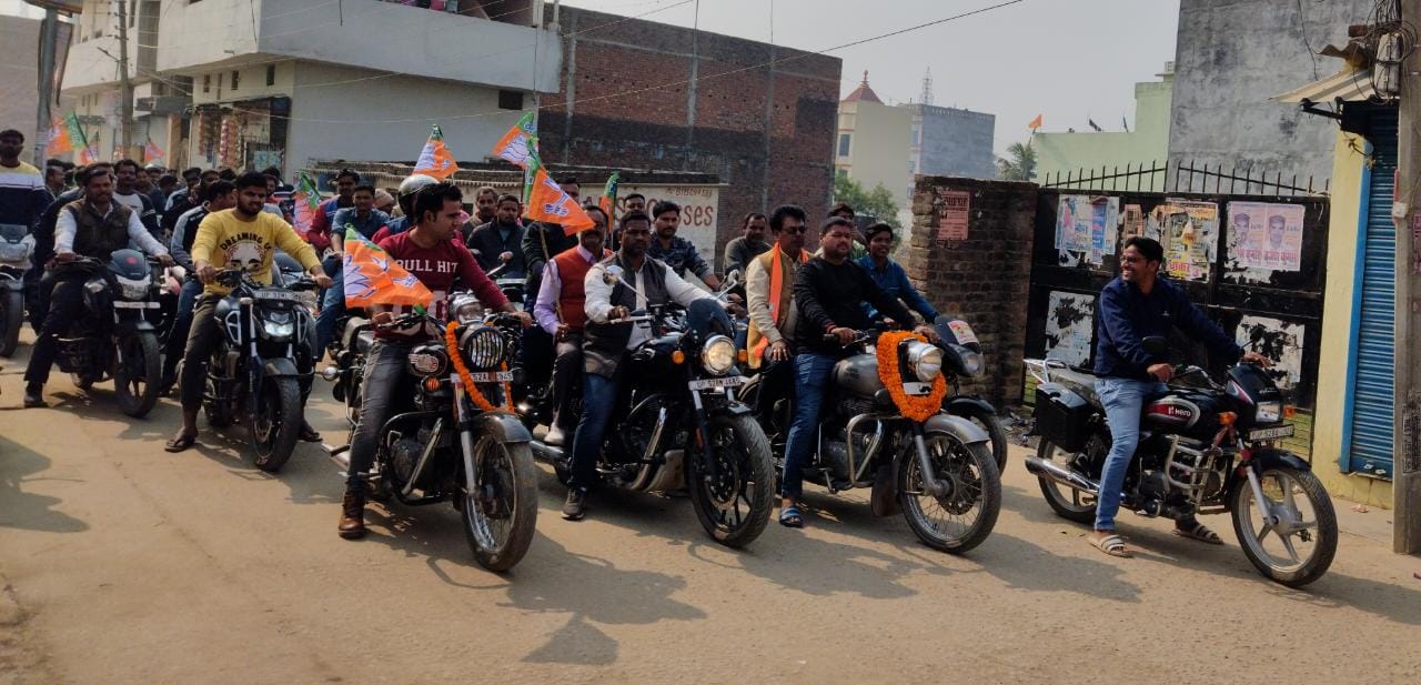 सलेमपुर/देवरिया(राष्ट्र की परम्परा)। नगर निकाय चुनाव को लेकर प्रत्यशियों ने अभी से दम-खम दिखाना चालू कर दिया है। रविवार को सलेमपुर नगर पंचायत में अध्यक्ष पद के लिए प्रत्याशी अश्वनी पाण्डेय, जो भाजपा से उम्मीदवारी का दावा कर रहे हैं, ने एक मोटर साइकिल जुलूस निकालाl जिसमे सैकड़ों मोटरसाइकिल सवार नवजवान अश्विनी पाण्डेय के साथ सलेमपुर की गलियों और मेन रोड पर निकलेl