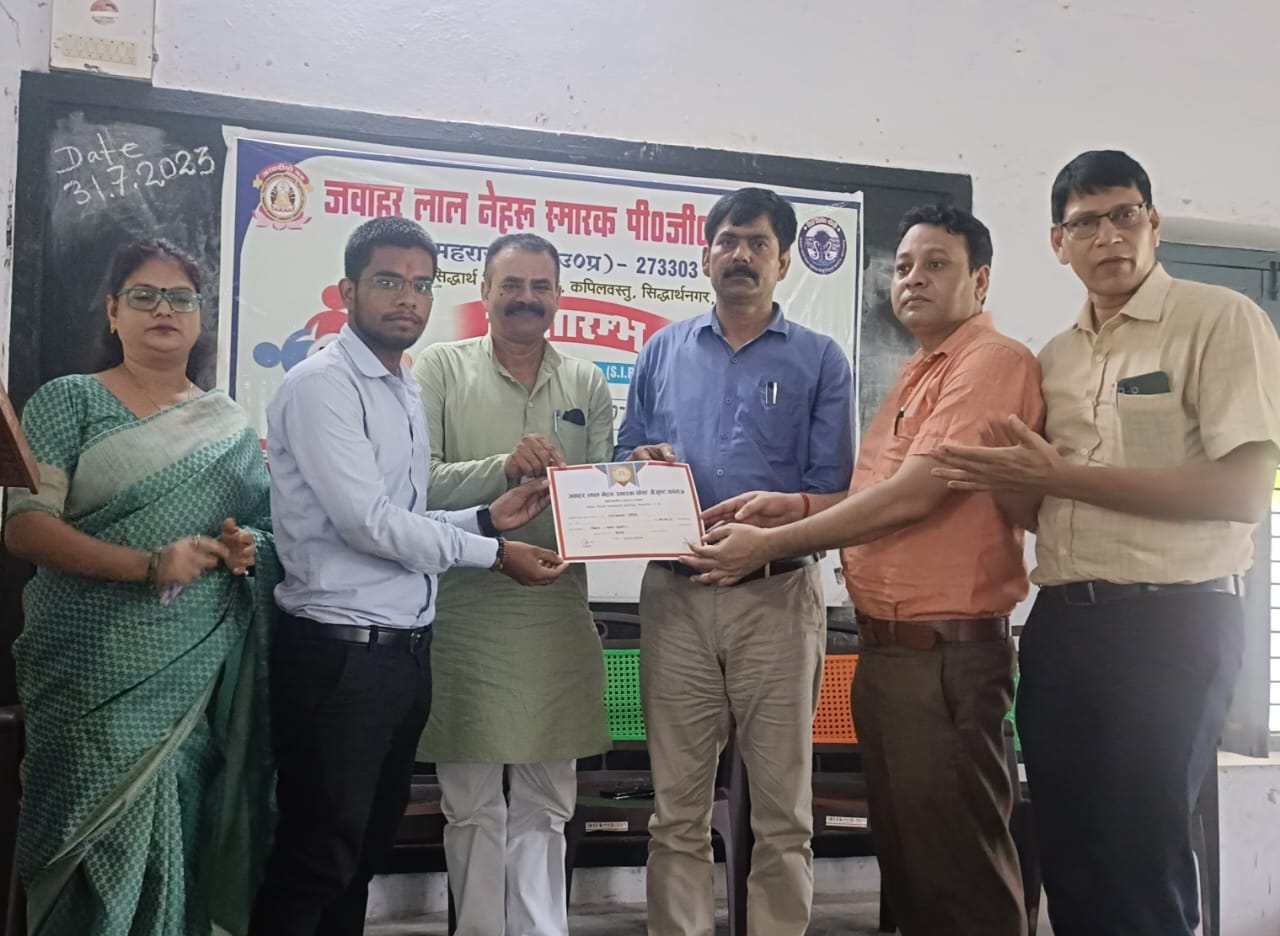 दीक्षारंभ समारोह में महाविद्यालय में सड़क सुरक्षा जागरूकता अभियान के अंतर्गत संपन्न निबंध पोस्टर भाषण और क्विज प्रतियोगिता के विजेता रितिका पटेल ,नाज़नीन खातून ,शिवांगी प्रजापति, पल्लवी वर्मा, आकृति प्रजापति ,सत्य प्रकाश द्विवेदी, राज त्रिपाठी और पल्लवी गौड़ को प्राचार्य डॉ मिश्र ने प्रमाण पत्र देकर सम्मानित किया ।